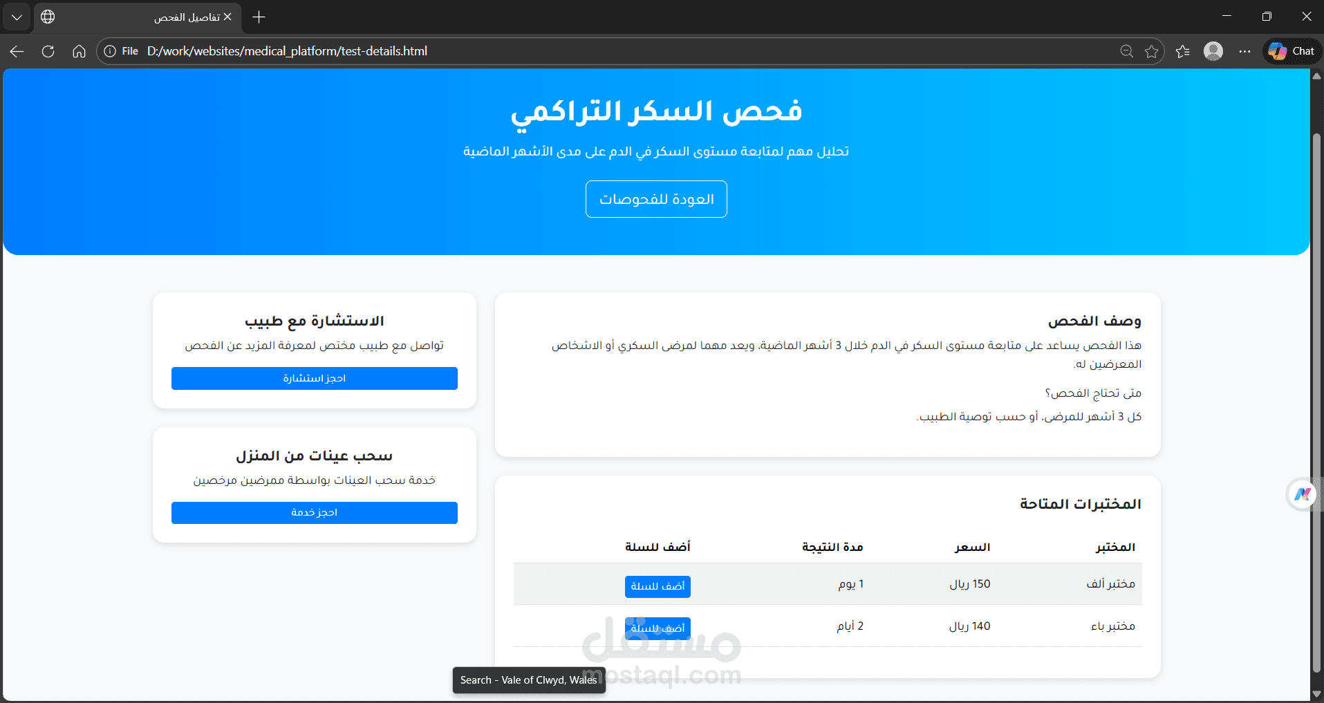 صفحة مخصصة للفحوصات الطبية مع تفاصيل كاملة