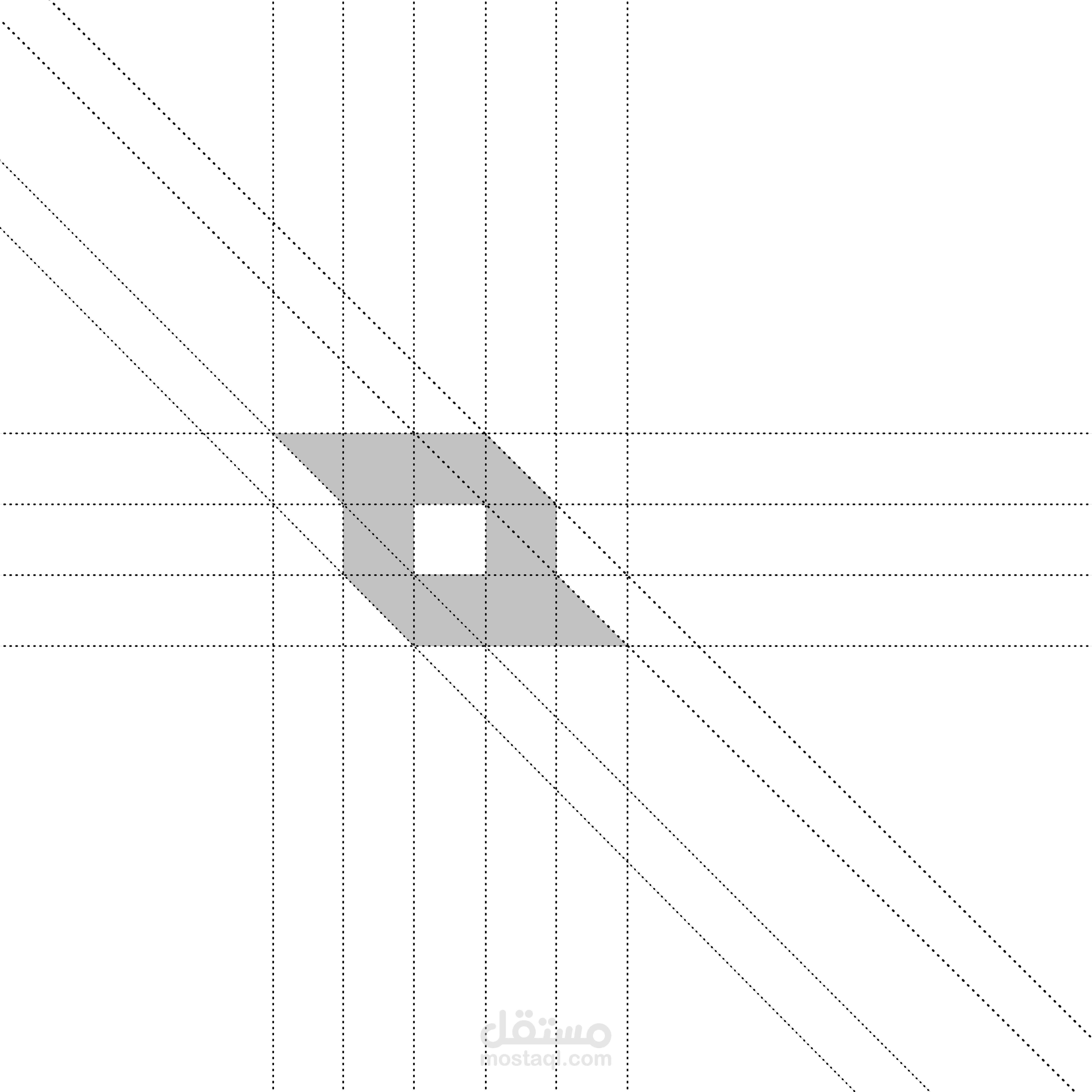 Geometric Construction: The icon to the left is an abstract, angular shape composed of thick black blocks with a central square cutout.