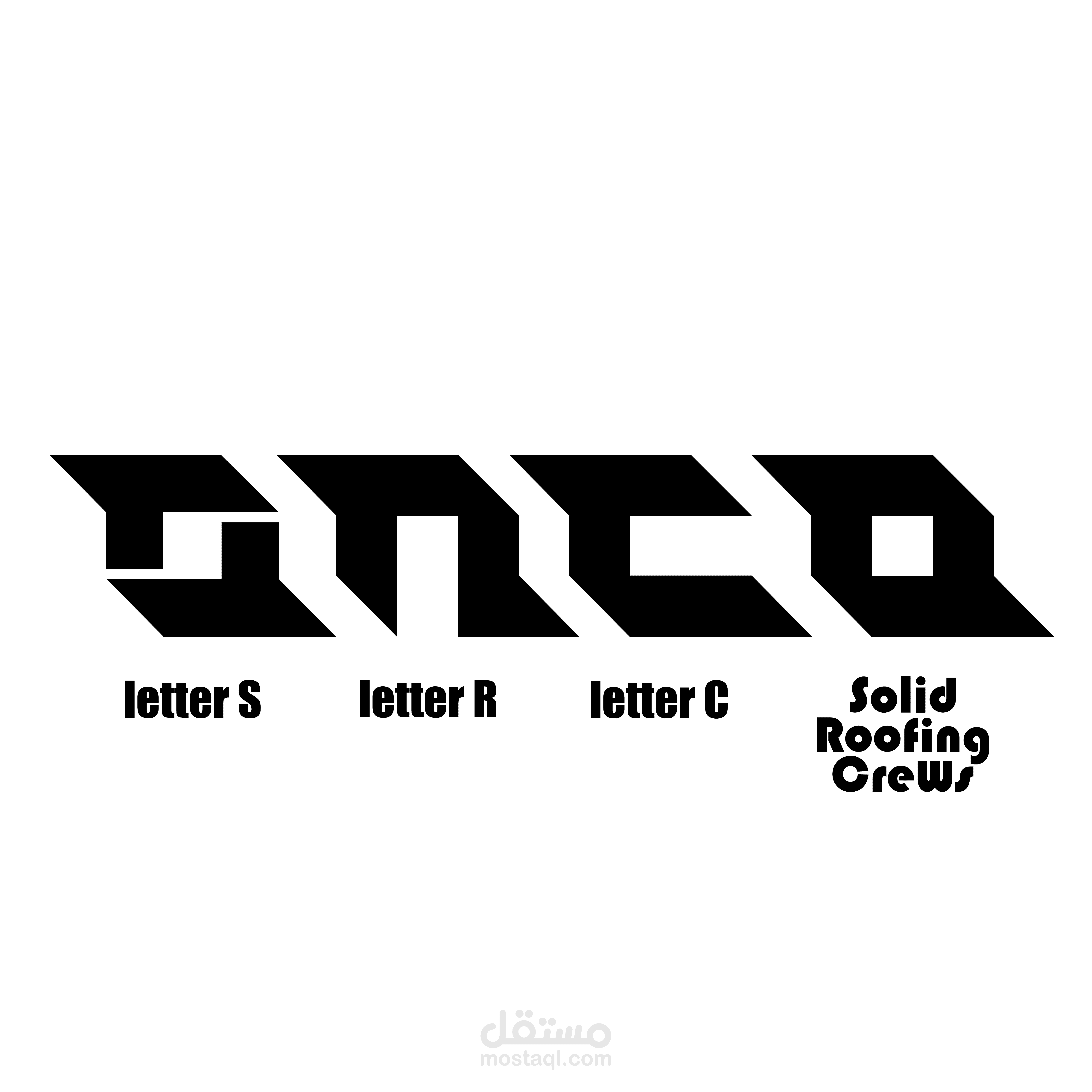 Alignment: The text is stacked in three levels ("Solid," "Roofing," "Crews"), creating a compact rectangular block that balances the visual weight of the icon.