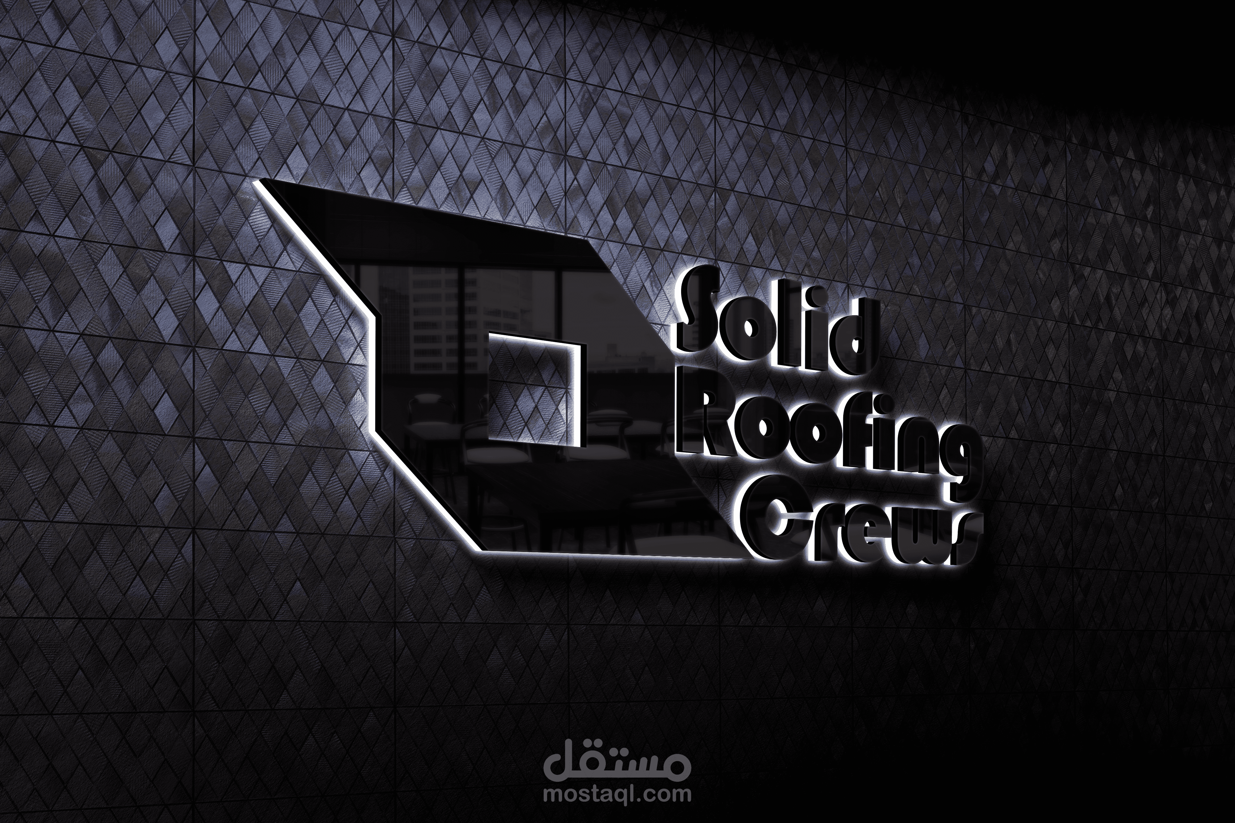 Visual Metaphor: The sharp, diagonal lines evoke the silhouette of a slanted roofline or a structural joint. The "S" shape formed by the negative space/angles subtly nods to the first letter of "Solid."