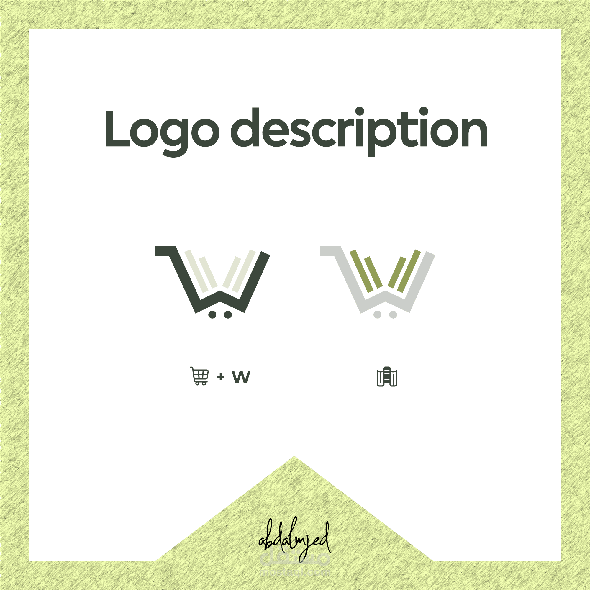 Warqat ورقات, (W letter + Books + Shopping Cart)