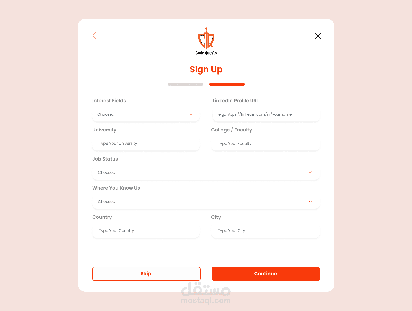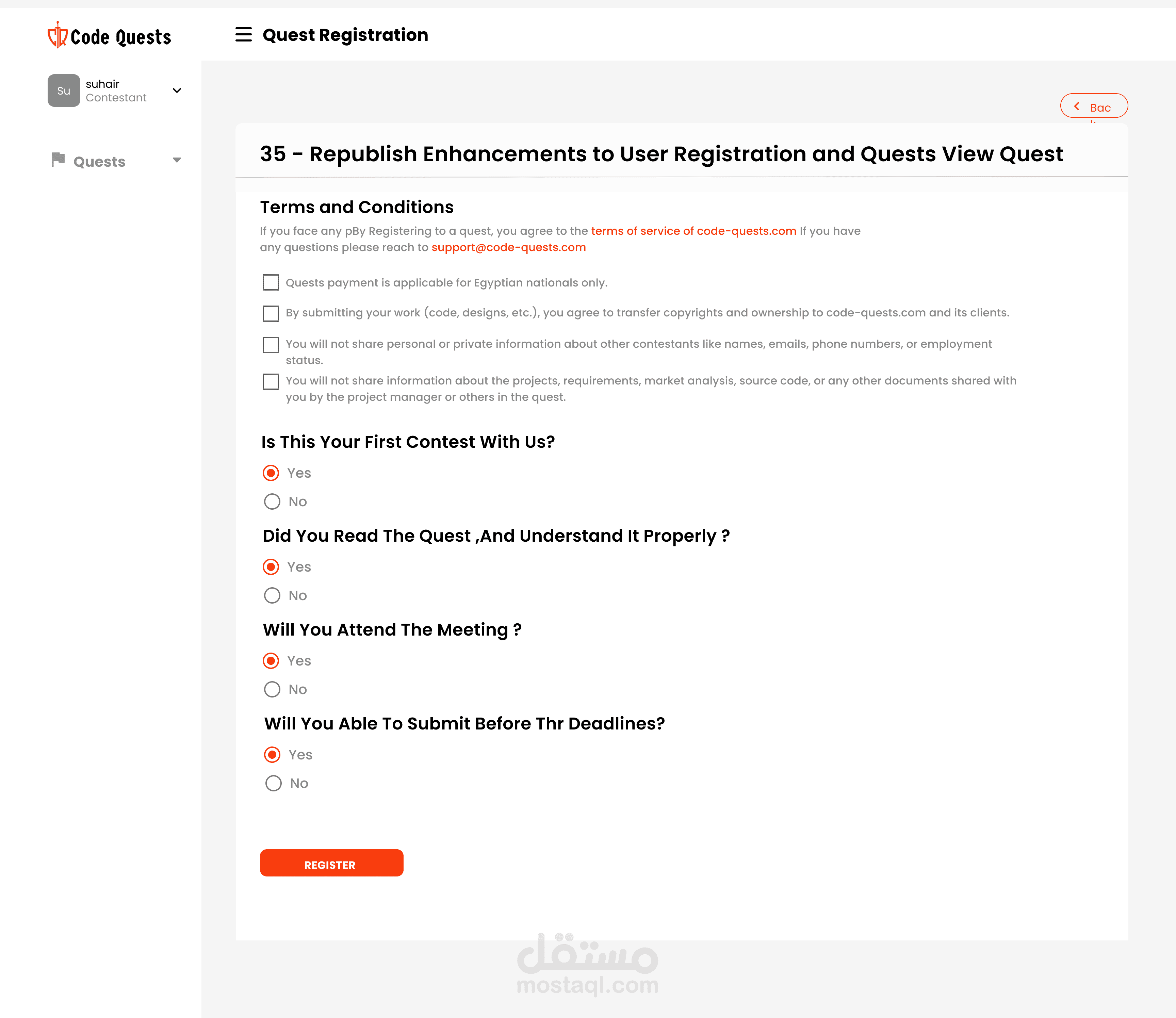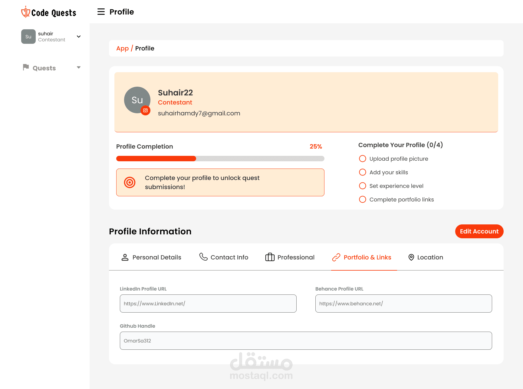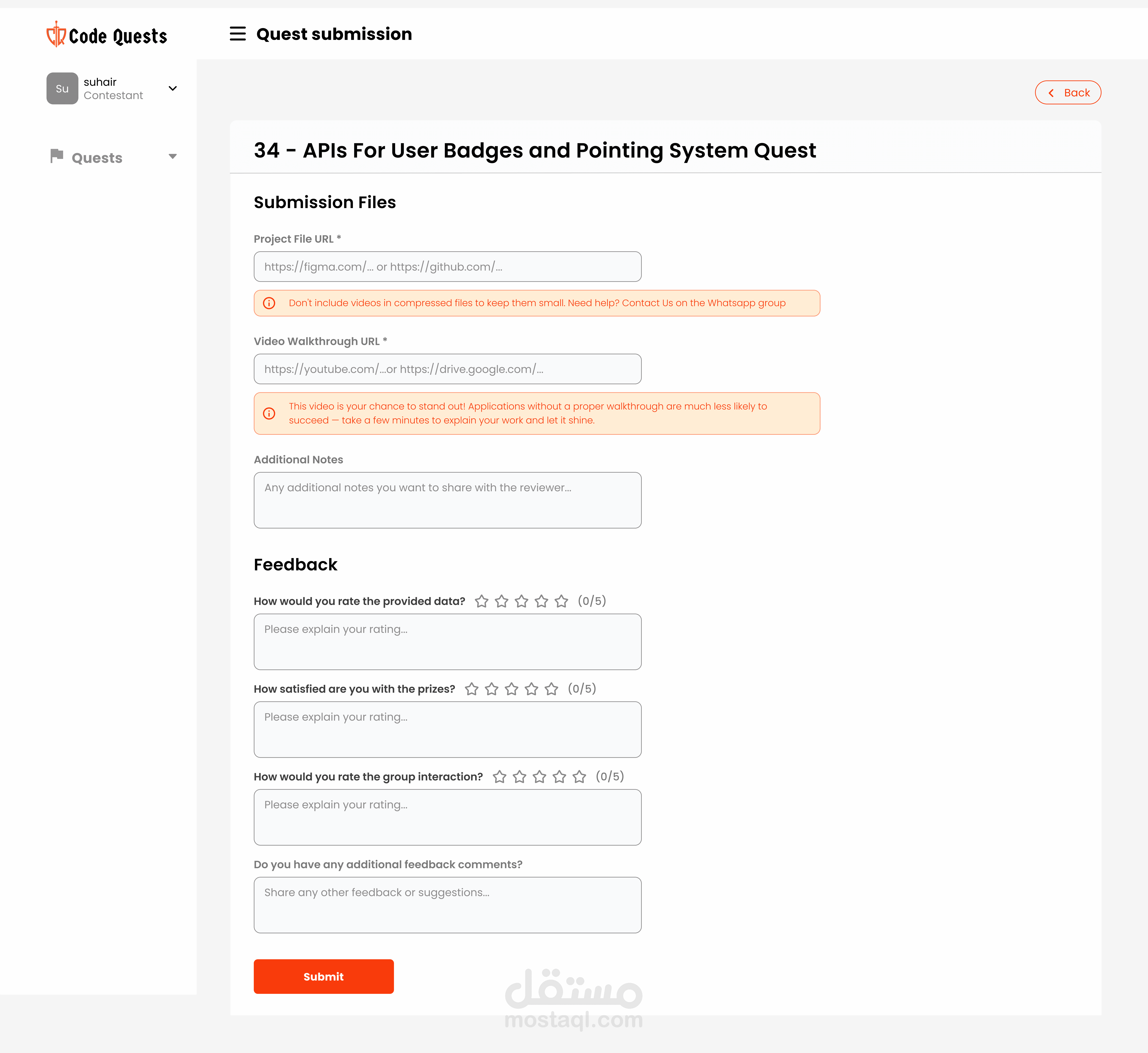 Redesigned the complete Code-Quests user experience, enhancing signup, onboarding, quest listing, quest details, registration, and submission flows. Focused on improving clarity, engagement, and usability while maintaining consistency with the existing design system. Delivered polished, developer-ready UI designs that clearly differentiate between Task-Based and Hiring Quests, ensuring a smoother and more enjoyable experience for all users.