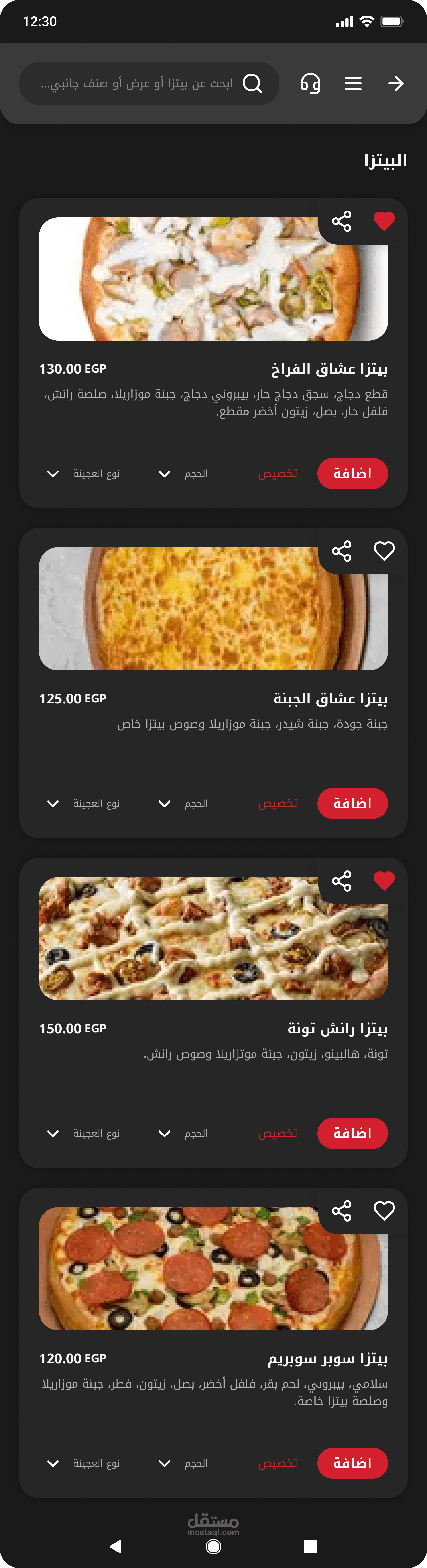 Pizza Master – تصميم تطبيق احترافي لطلب وتوصيل البيتزا