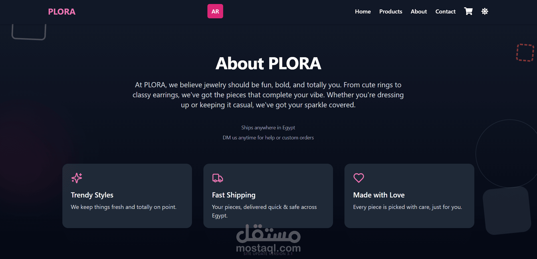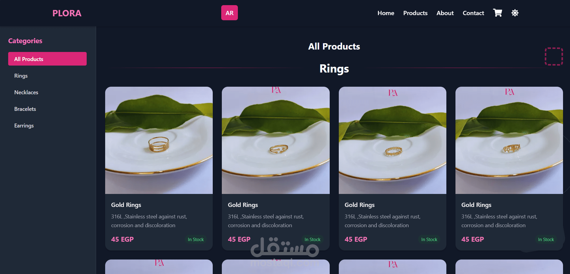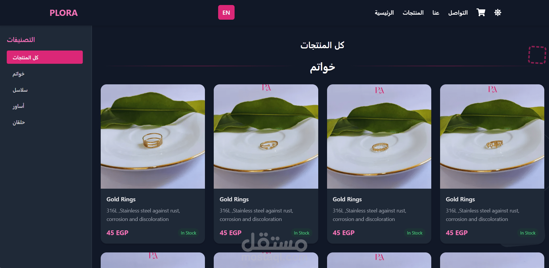 مشروع: PLORA STORE – متجر إلكتروني لبيع الحلقان والخواتم والسلاسل