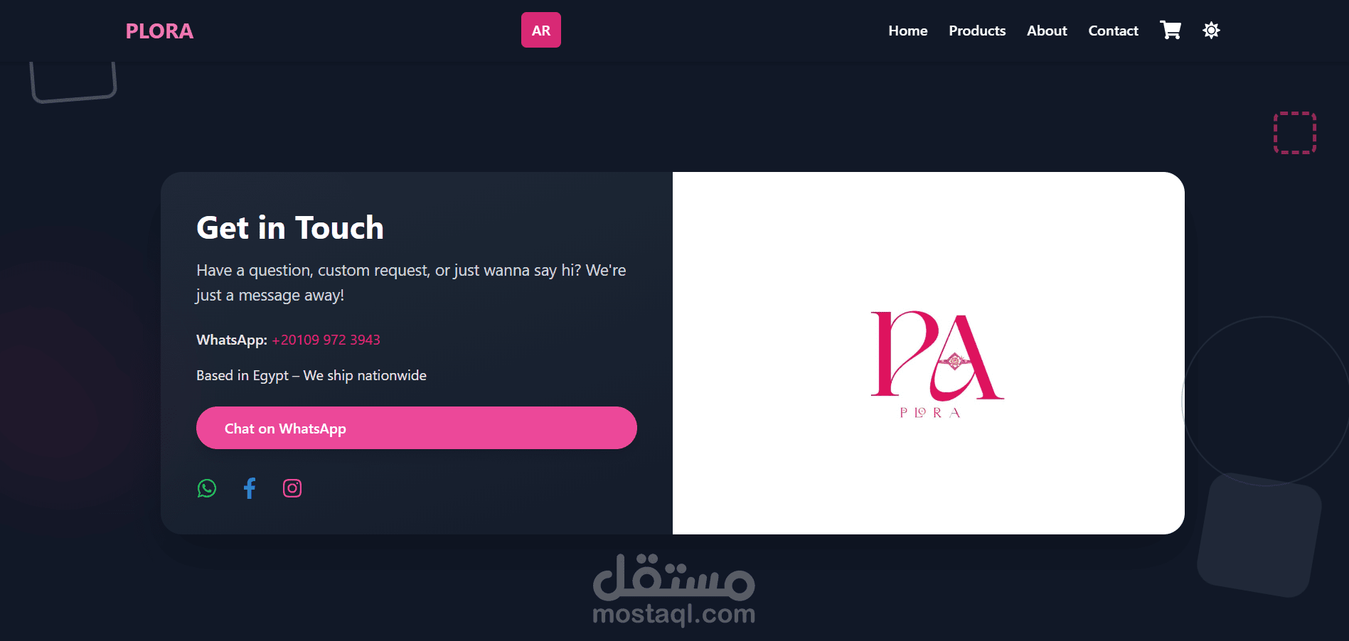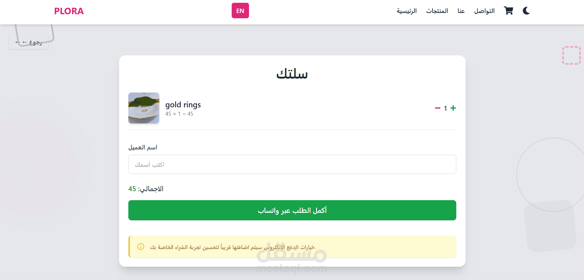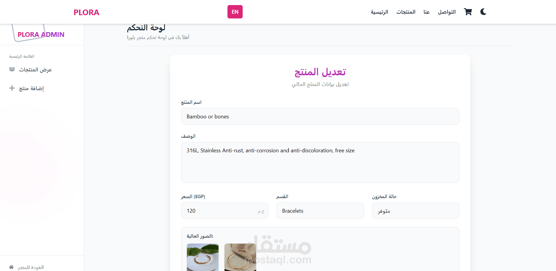 مشروع: PLORA STORE – متجر إلكتروني لبيع الحلقان والخواتم والسلاسل