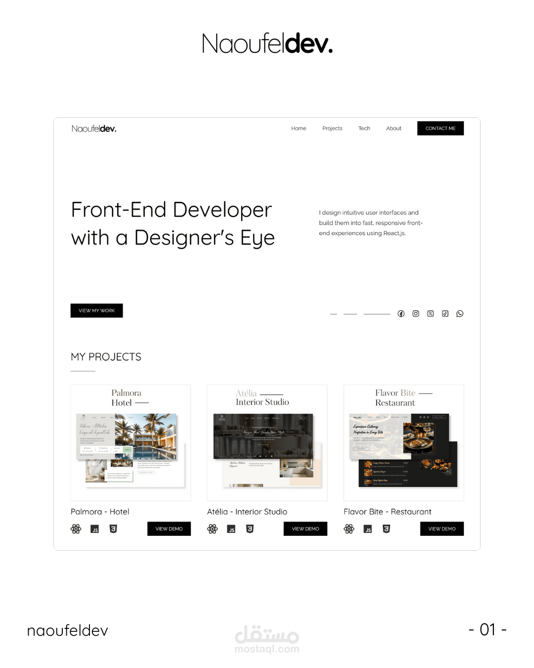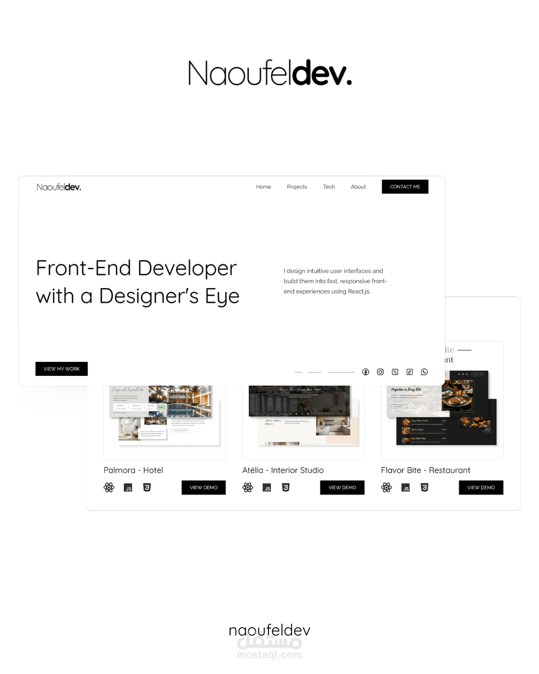 هذا بورتفوليو أعمالي في تطوير الويب فرونت إند. أشارك فيه مشاريع واجهات حديثة مبنية بـ React وNext.js، مع تركيز على الأداء، الريسبونزيف، وتجربة مستخدم نظيفة.