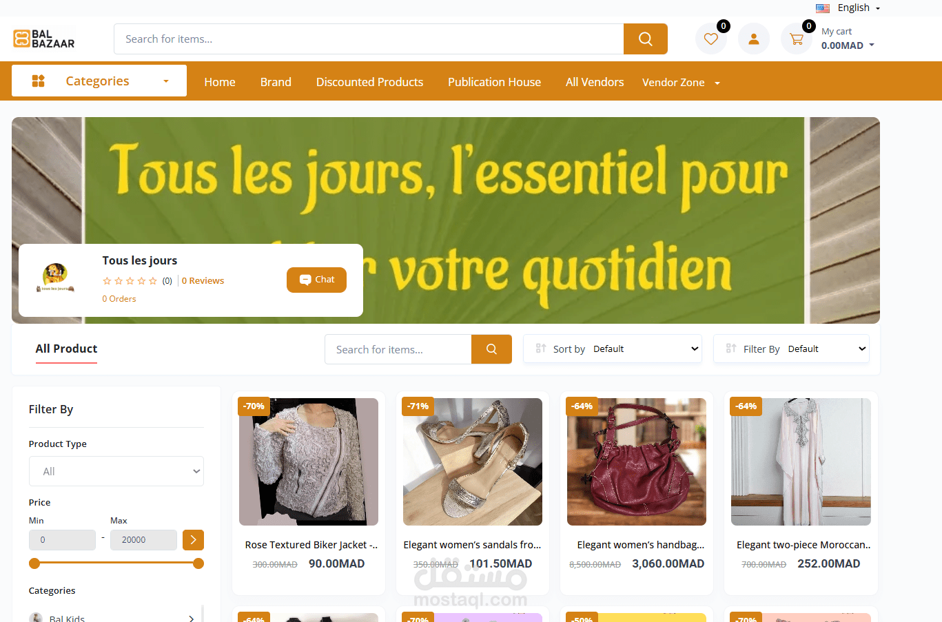 متجر الكتروني لشراء وبيع منتجات جديدة ومستعملة ، مع تصفح حسب الفئات والموقع، وإمكانية التواصل بين المشتري والبائع، وتجربة متعددة اللغات (عربي/فرنسي/إنجليزي).