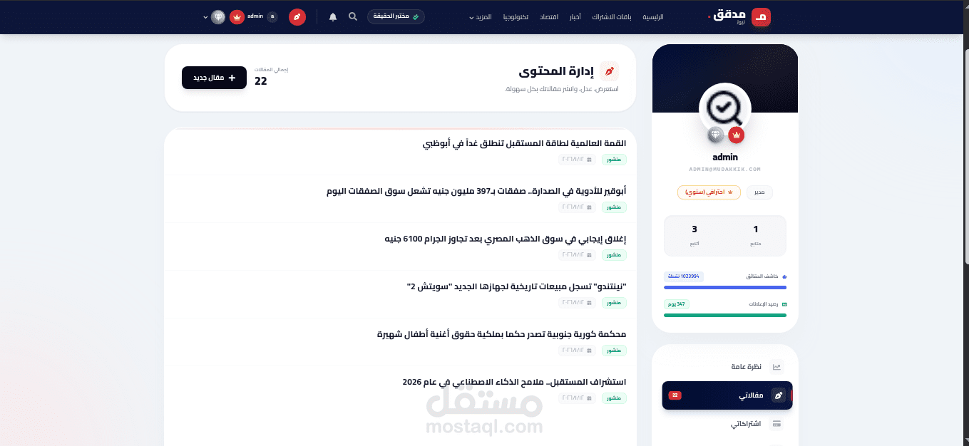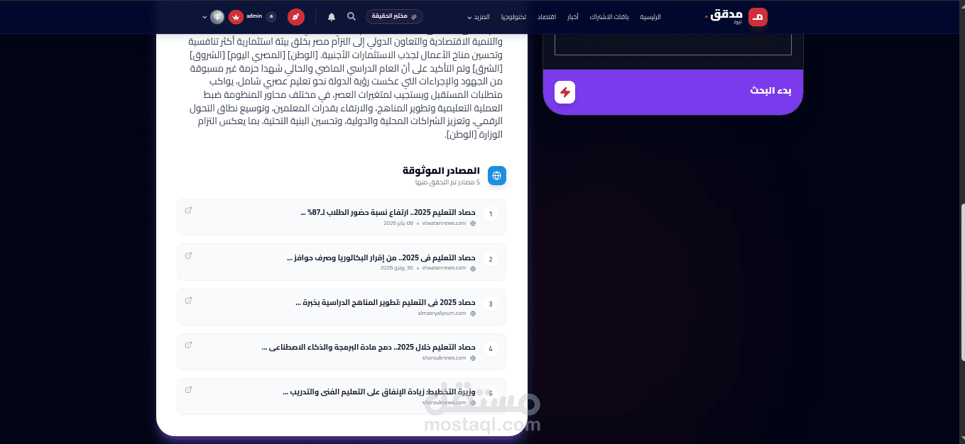 هذا المشروع يوضح خبرتي في التطوير المتكامل، دمج AI، وتصميم لوحات تحكم عالية التأثير، مع التركيز على مكافحة المعلومات المضللة في الإعلام العربي.