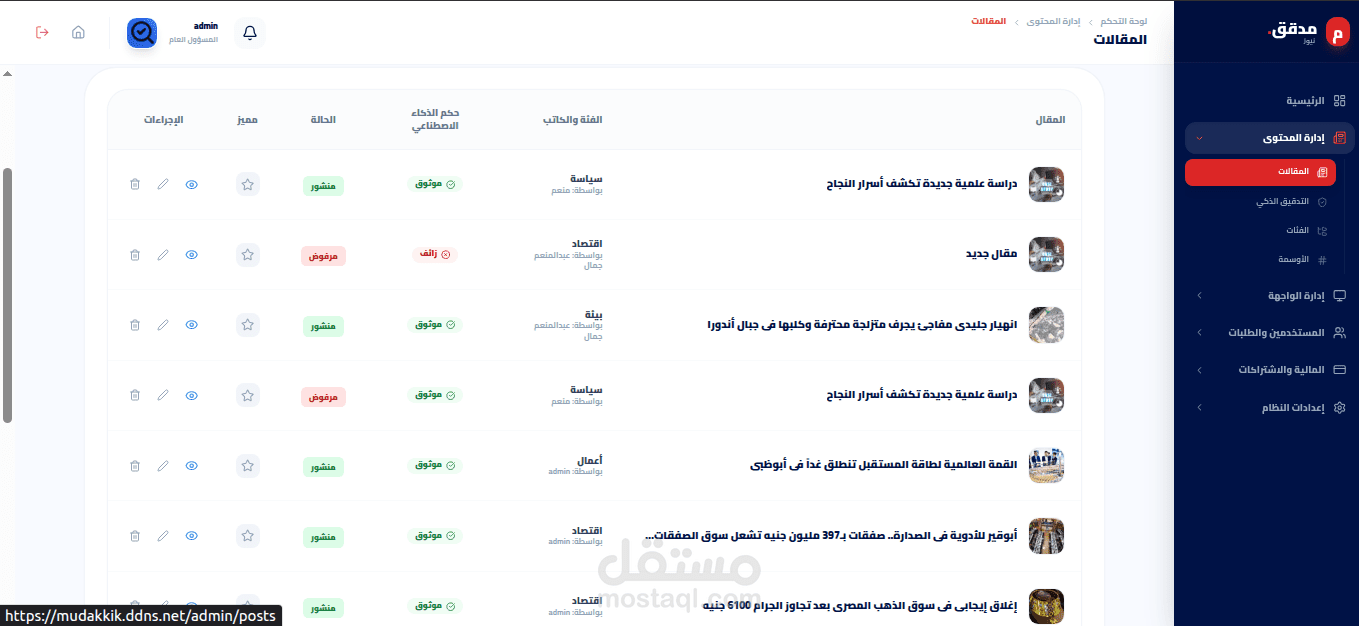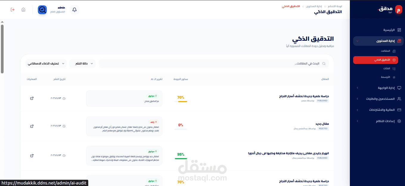 كنت عضو أساسي في فريق Mudakkik، منصة عربية متكاملة للتحقق من الأخبار وإدارة المحتوى، تجمع بين التحقق بالذكاء الاصطناعي وأدوات إدارة شاملة للمديرين والمحررين.