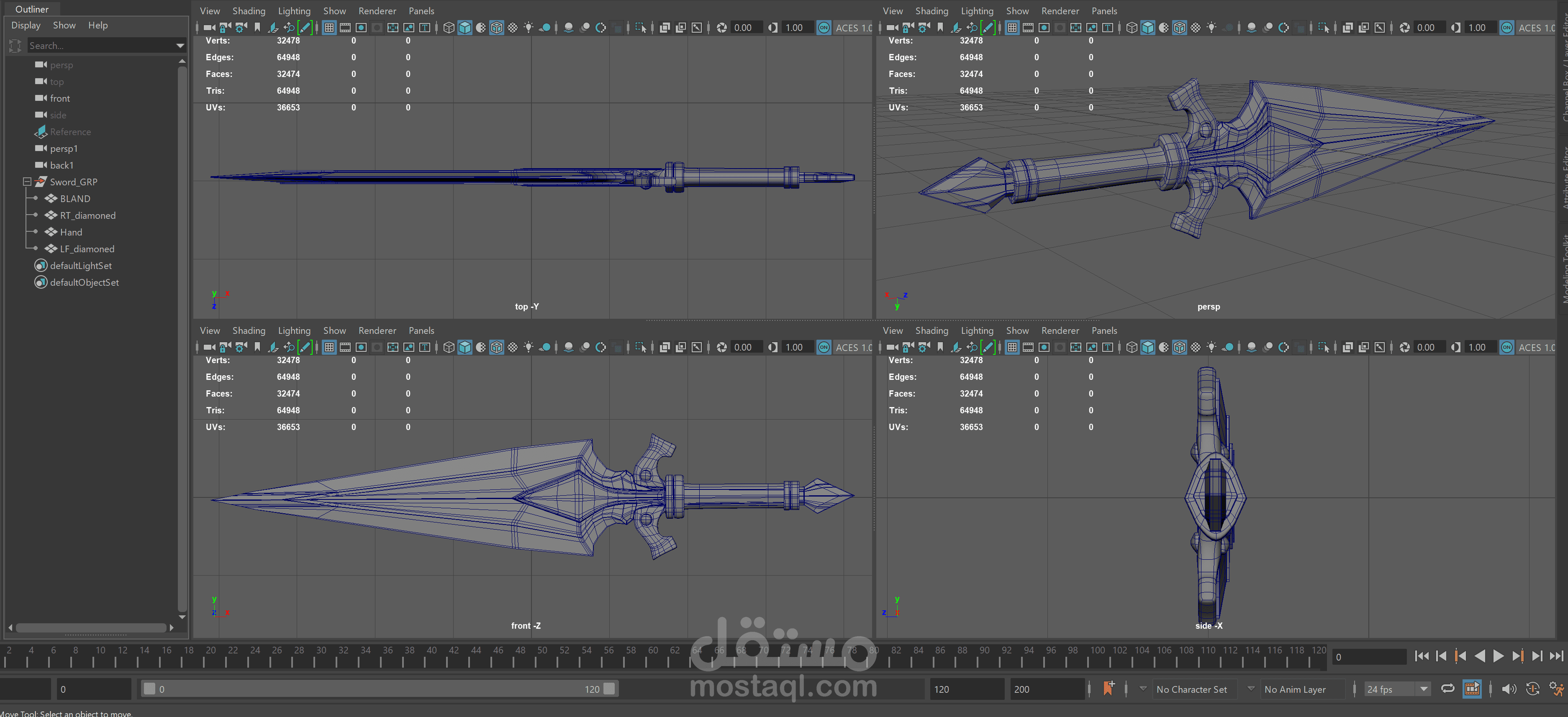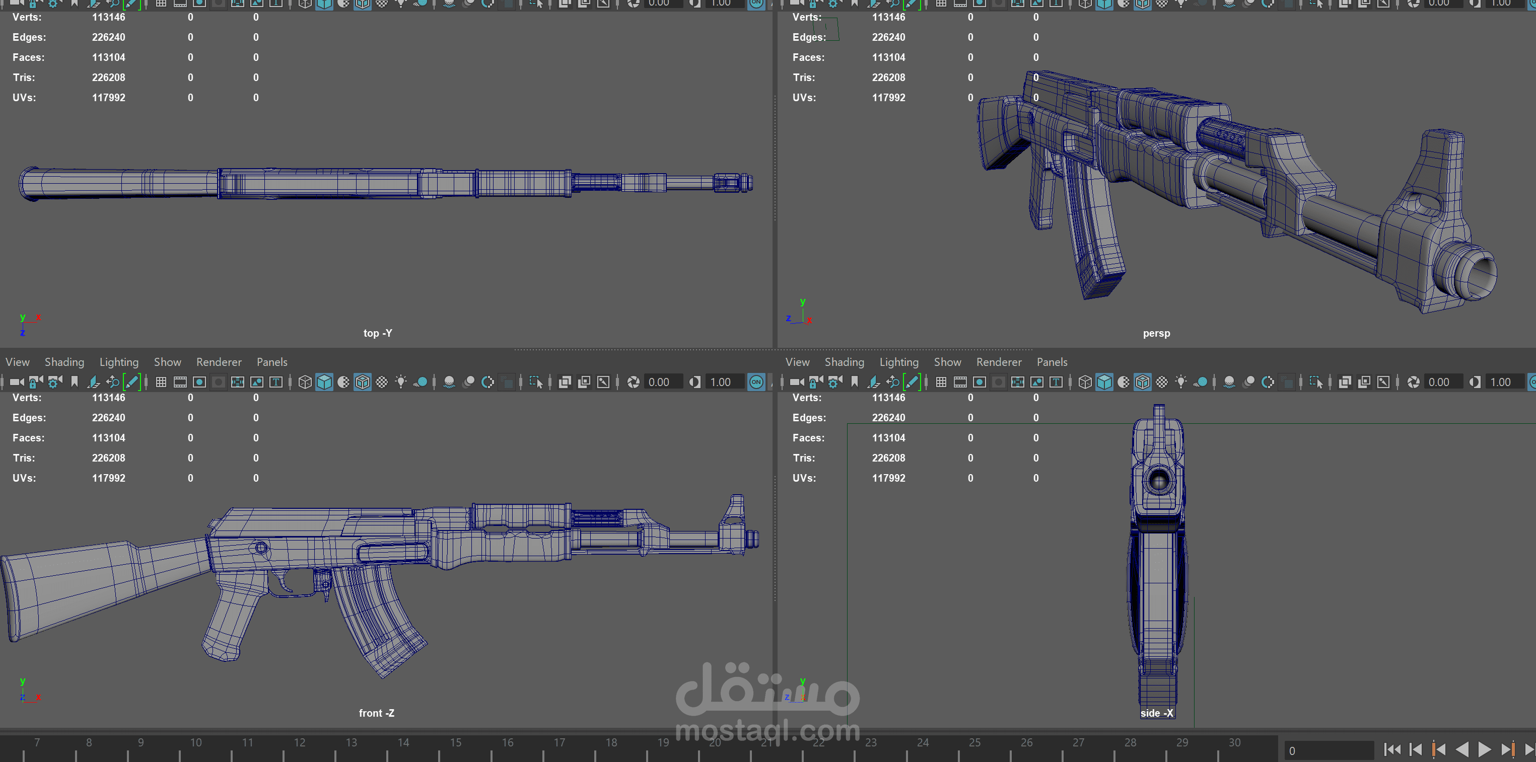 تم عمل ال modeling علي برنامج maya مع مراعاة تقليل الpolygones .