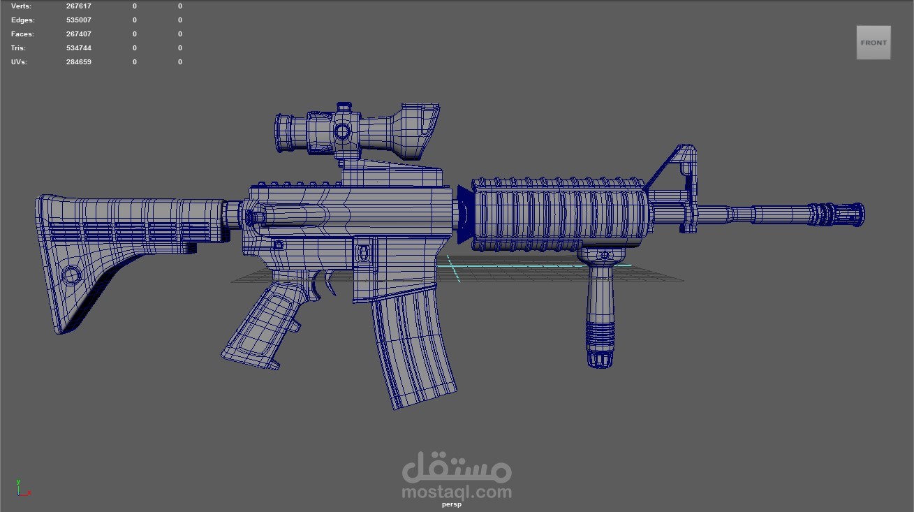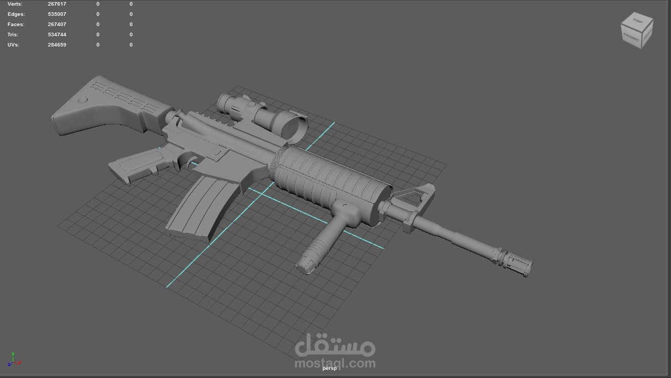 تصميم نموذج ثلاثي الأبعاد لسلاح من نوع M4A1 Rifle (Hard Surface Prop) للاستخدام في الألعاب والأنيميشن.