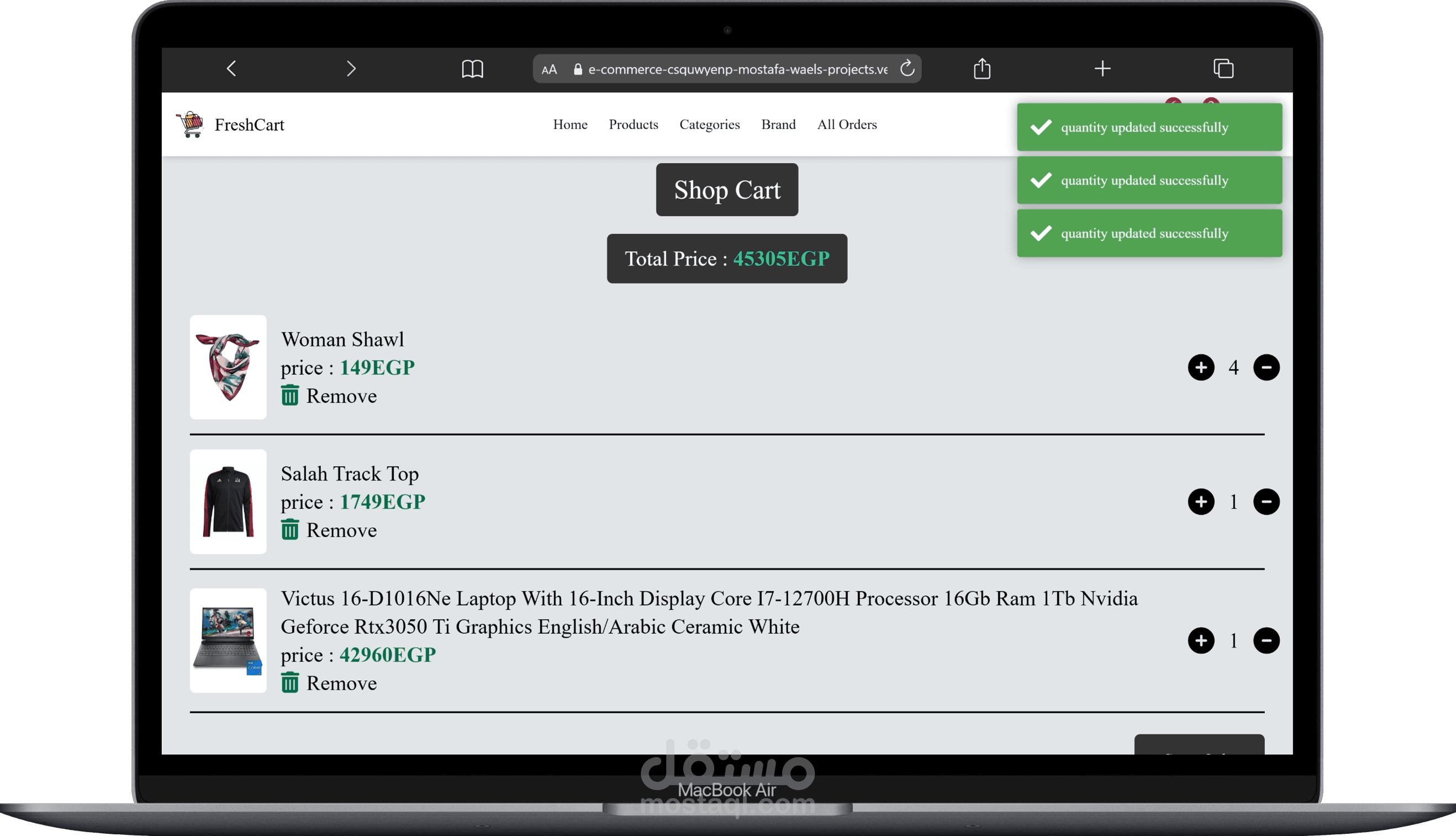 ? إمكانية إضافة المنتجات لعربة التسوق (Cart) وتعديل الكميات
