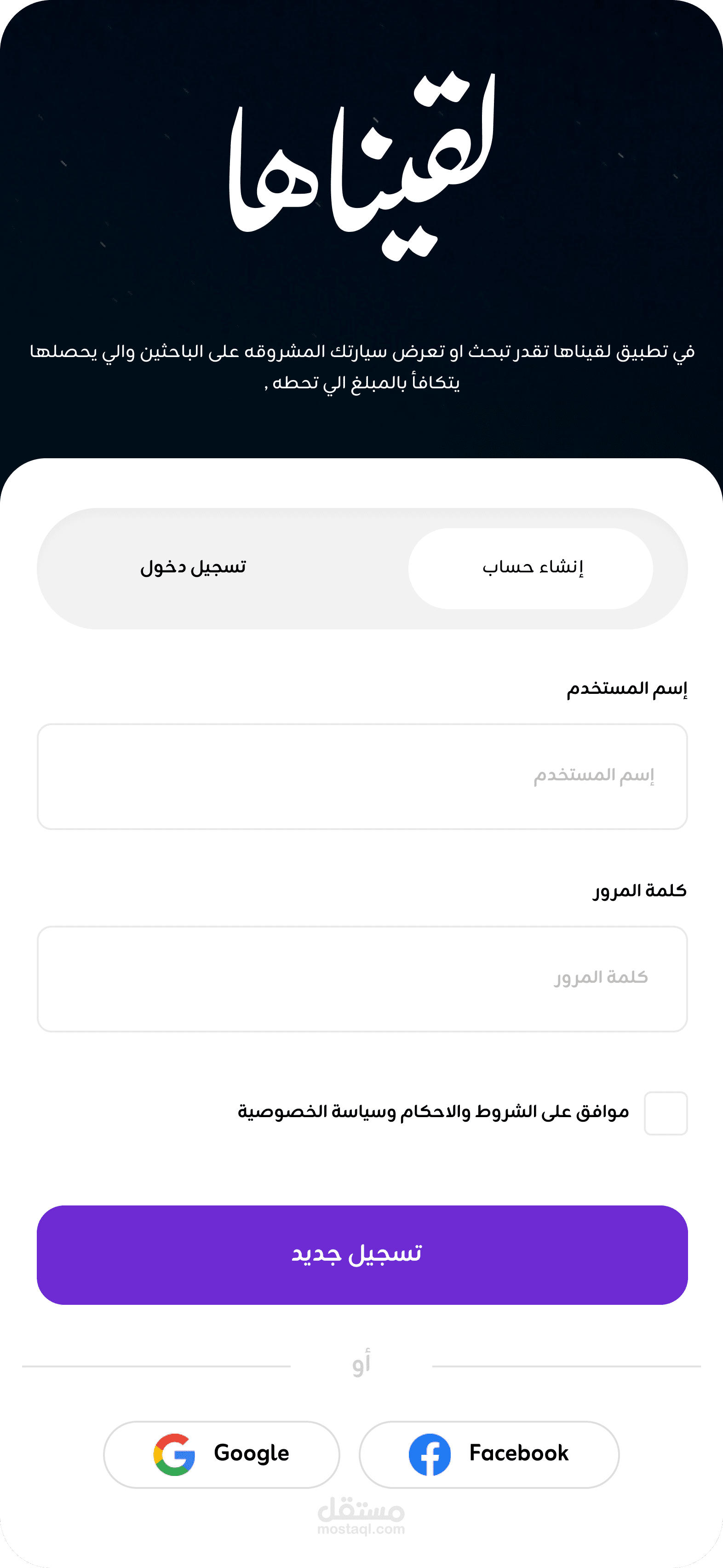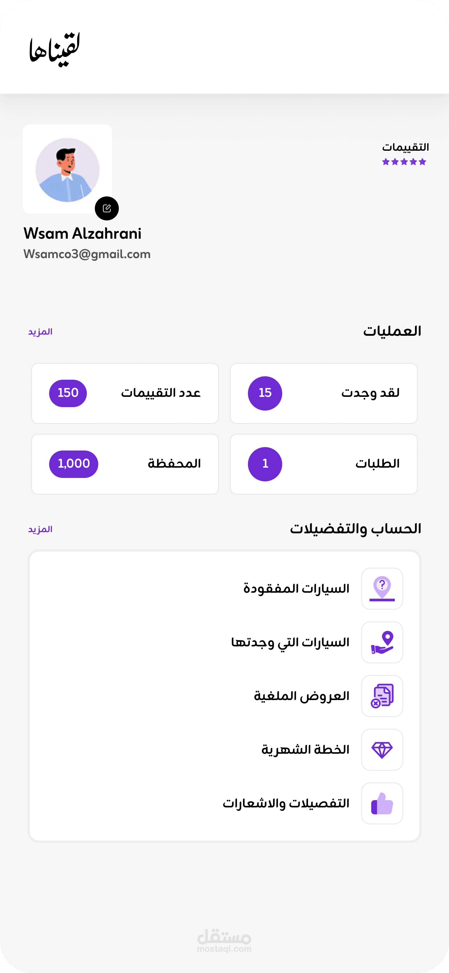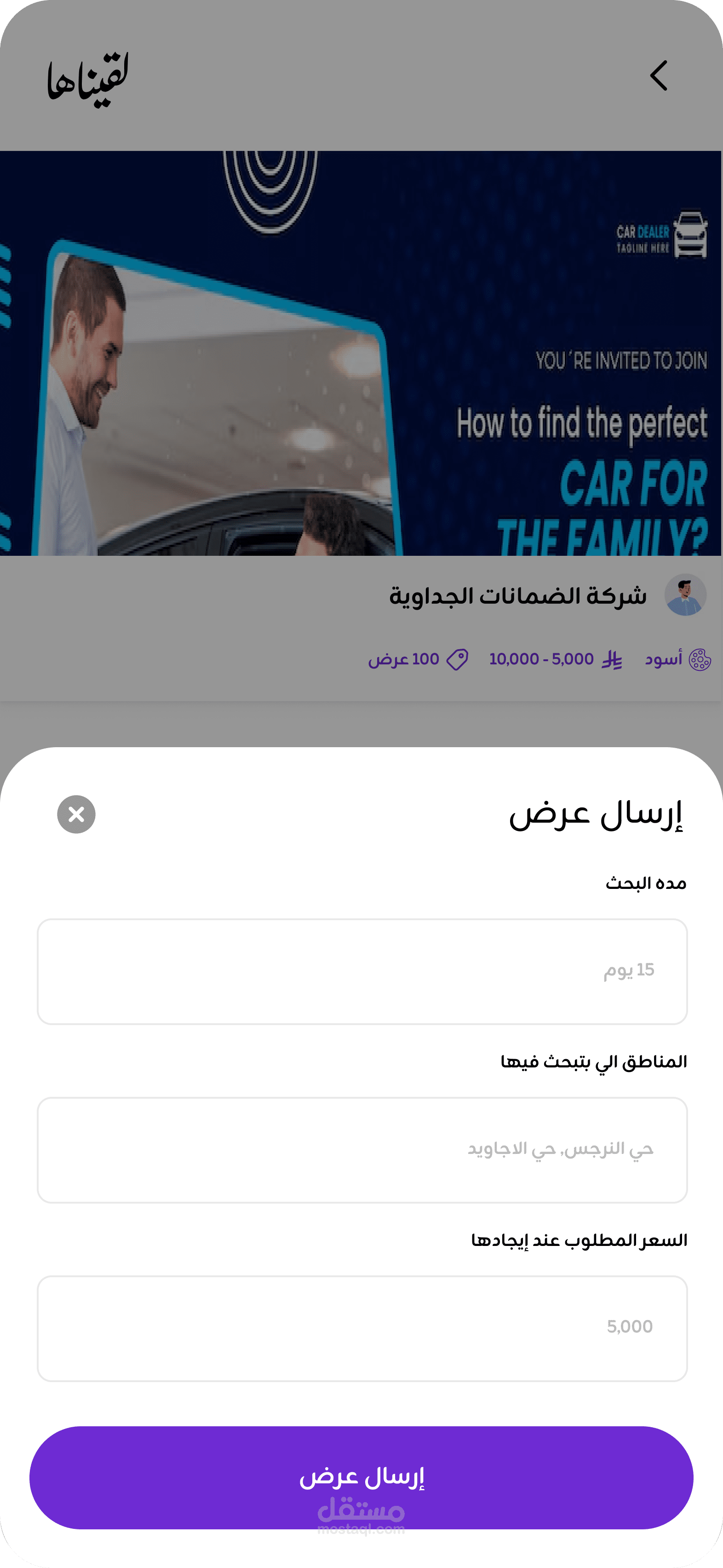 تطبيق لقيناها هو تطبيق للبحث او نشر إعلانات في حال فقدان مركبات