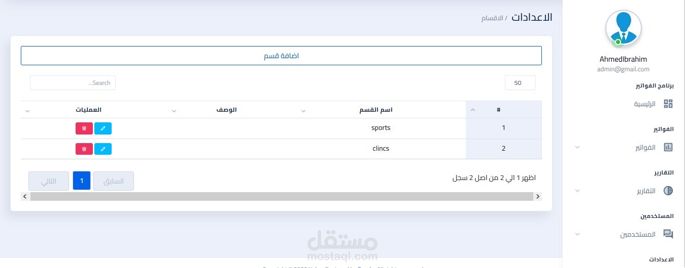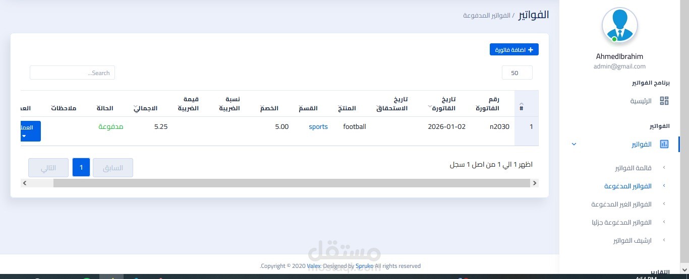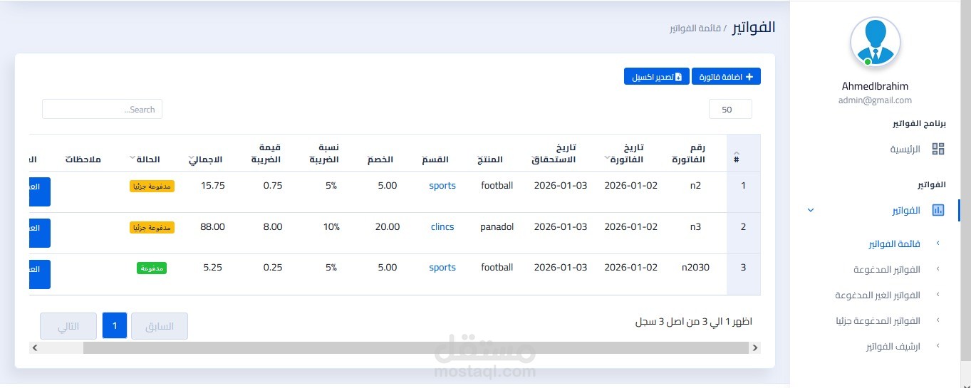 إمكانية إرسال الفواتير بالبريد الإلكتروني