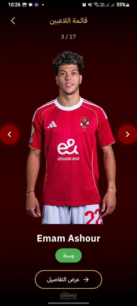 قائمة اللاعبين: بروفايلات كاملة لنجوم الفريق (زي زيزو، إمام عاشور، الشناوي) مع صور بجودة عالية وإحصائياتهم ومراكزهم.