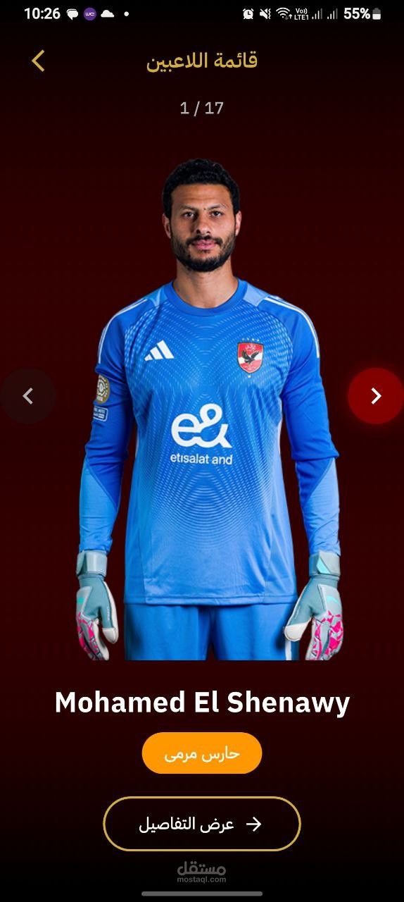 الديزاين ركز على الـ Dark Mode عشان يدي إحساس بالفخامة، مع استخدام اللون الأحمر والذهبي المميزين للنادي. التطبيق بيقدم رحلة كاملة للمشجع الأهلاوي، بداية من "دخلة" التطبيق اللي بتحسسك بالانتماء، مروراً بمتابعة الماتشات الجاية ونتائج اللي فاتت، لحد الغوص في تفاصيل نجوم الفريق ودولاب البطولات التاريخي.