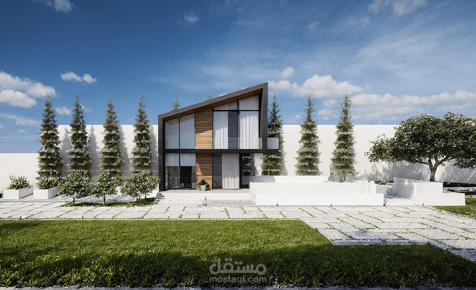 عباره عن عباره عن جناح مكتب خاص في فيلا مصمم ليستقبل العملاء داخل الفيلا وله مدخل خاص والجناح مكون من دورين الاول فيه المكتب والتاني فيه الخدمات من غرفة نوم وحمام وصاله معيشه .