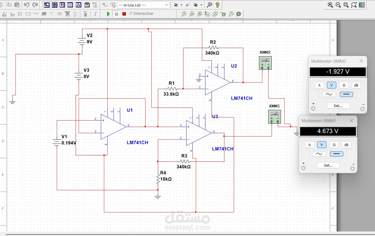A circuit that greatly amplifies the input voltage using three operational amplifiers with different functions: buffer, inverting, and non-inverting.