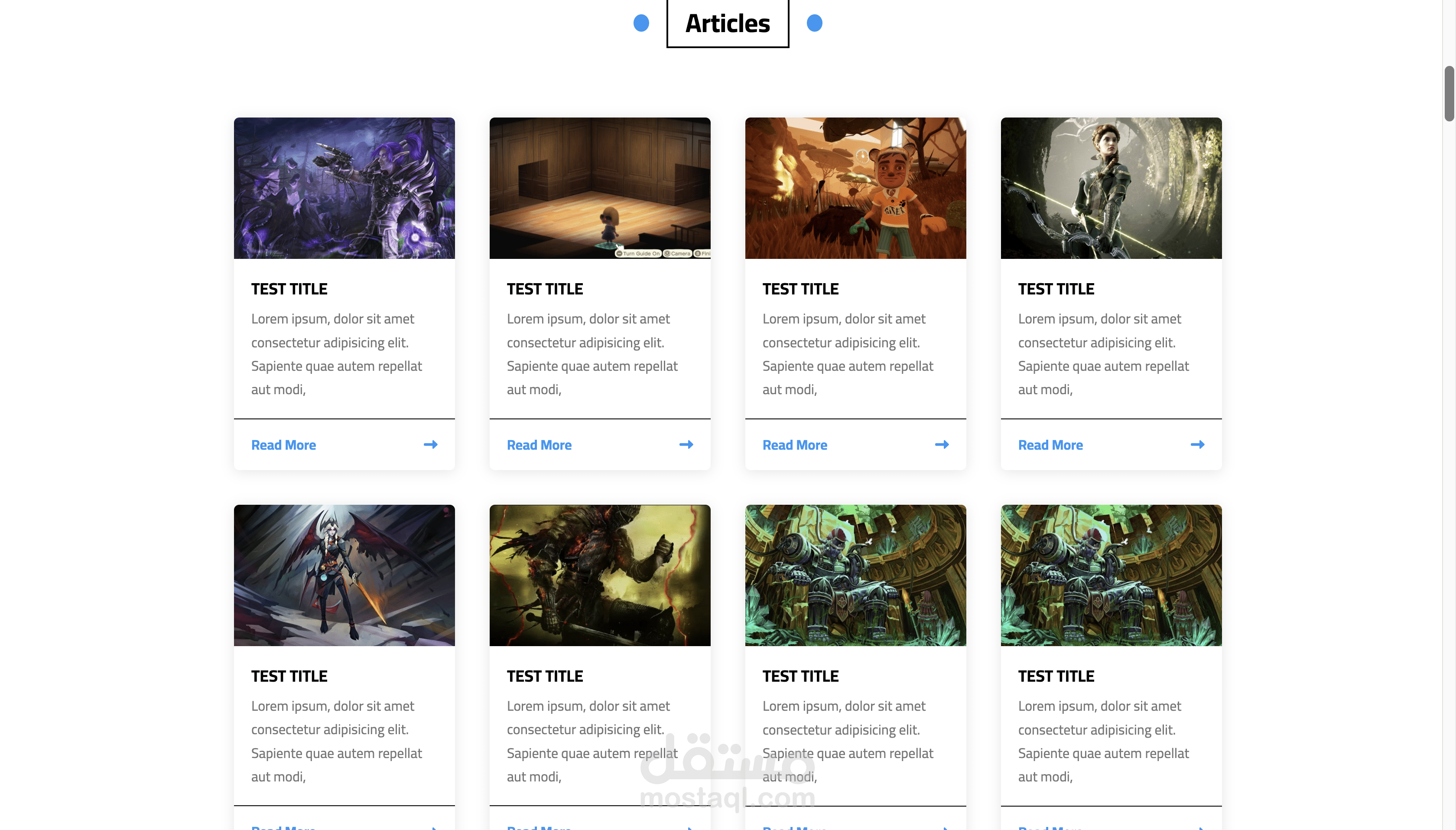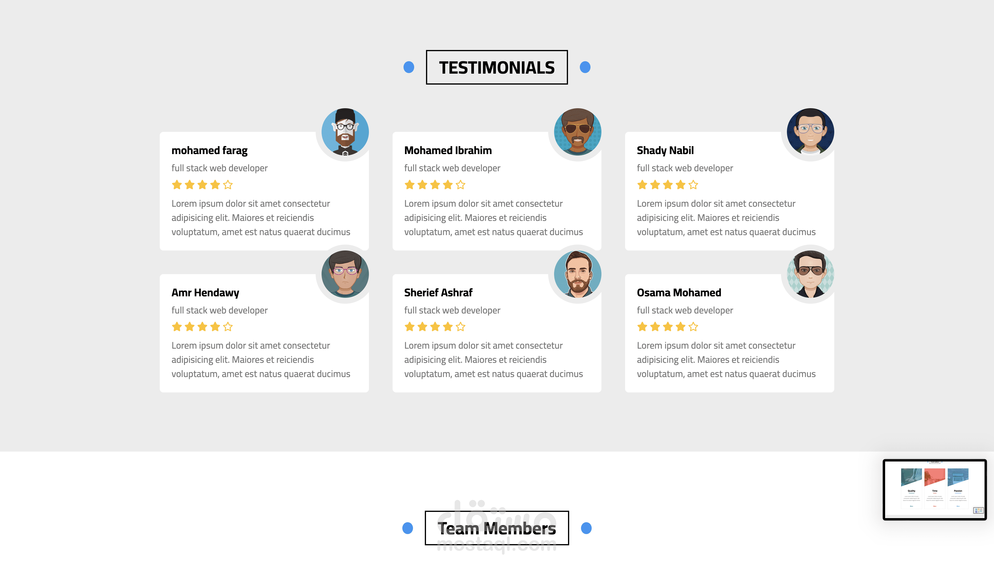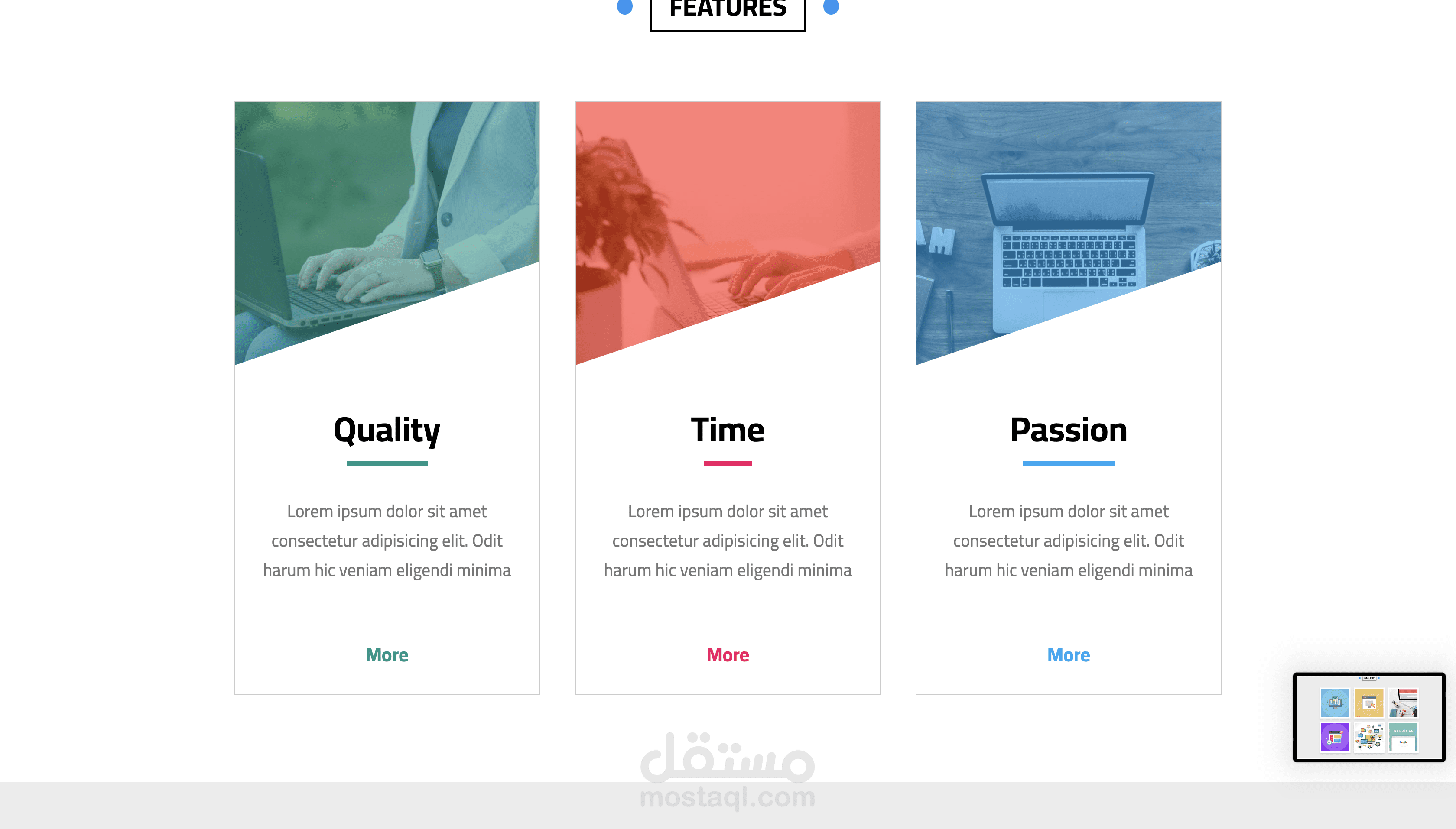 يحتوي على عدة أقسام منظمة مثل الصفحة الرئيسية، المقالات، المعرض، المميزات، وآراء العملاء.