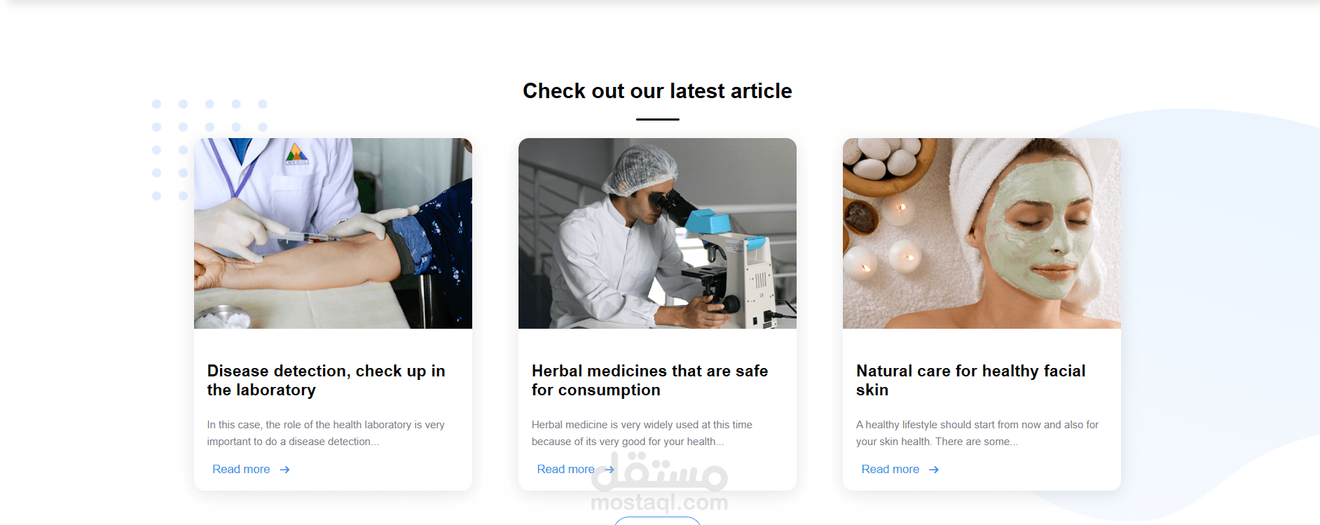 ✅ أقسام مخصصة لعرض الخدمات والمقالات الطبية