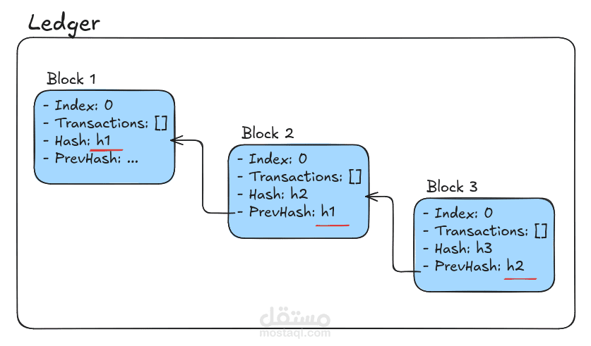 * ضمان سلامة السلسلة من خلال cryptographic hashing (SHA-256) والتحقق على مستوى الخادم (server-side validation).