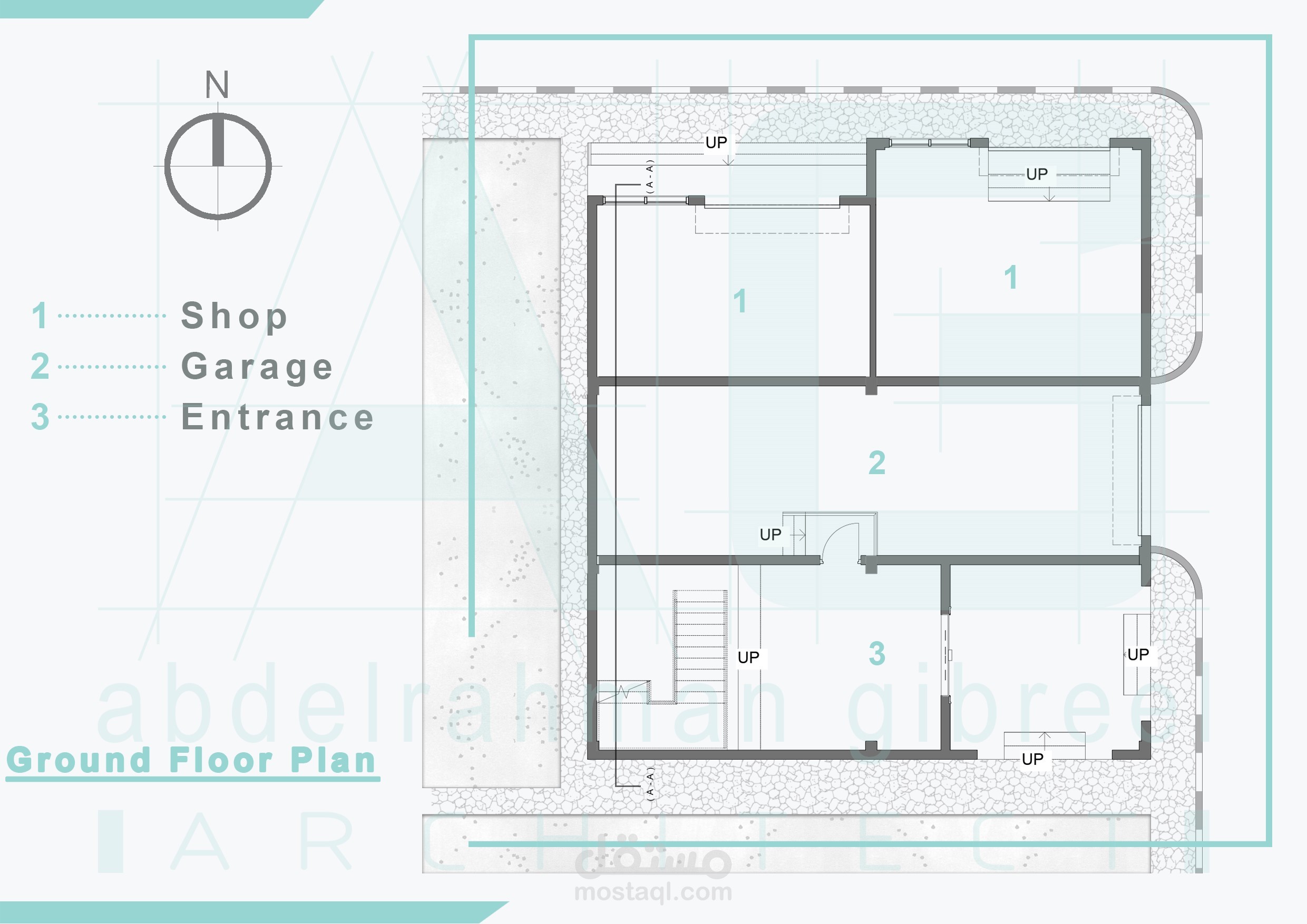 ودور ارضي خدمي لجراج لسيارتين و 2 منفذ بيع