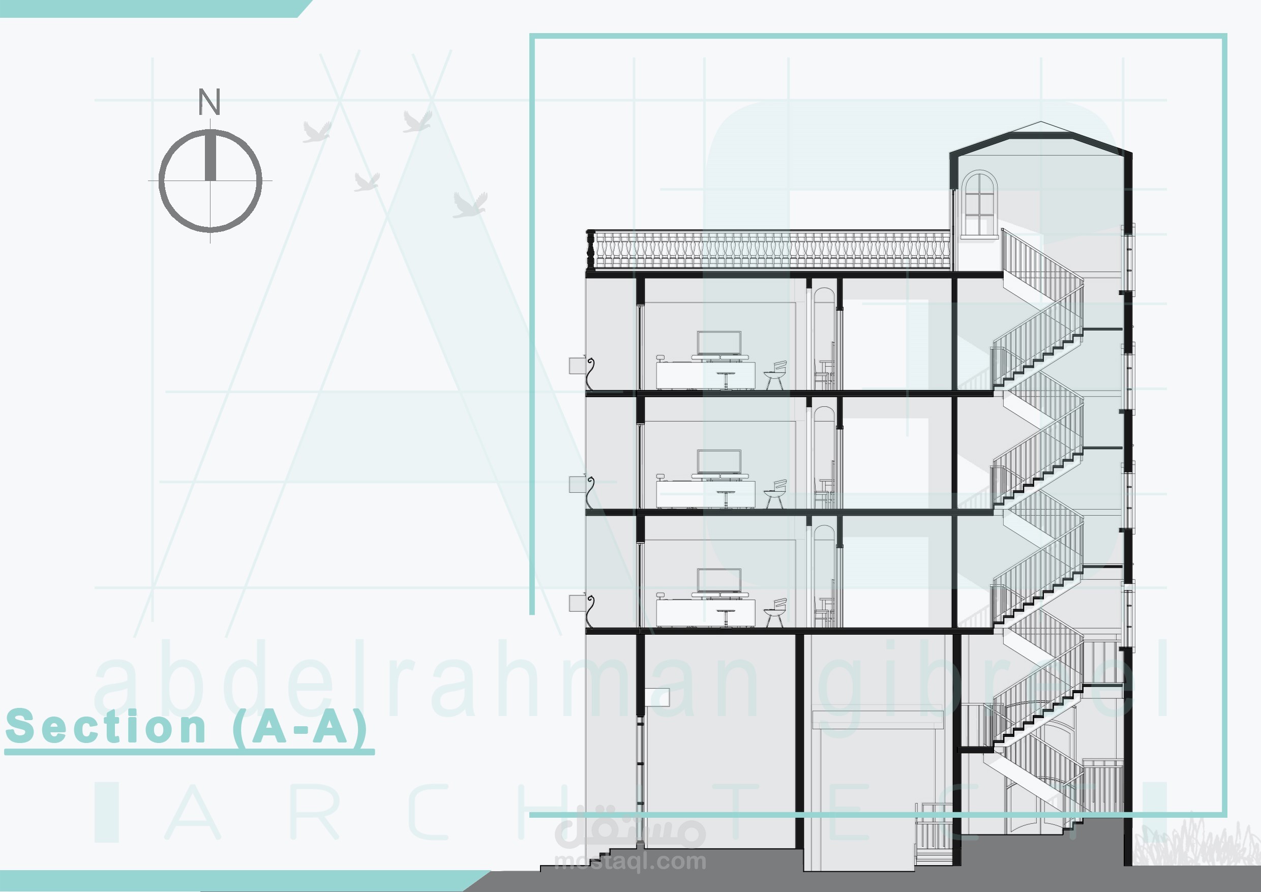 مكون من ثلاثة ادوار الدور شقة واحدة