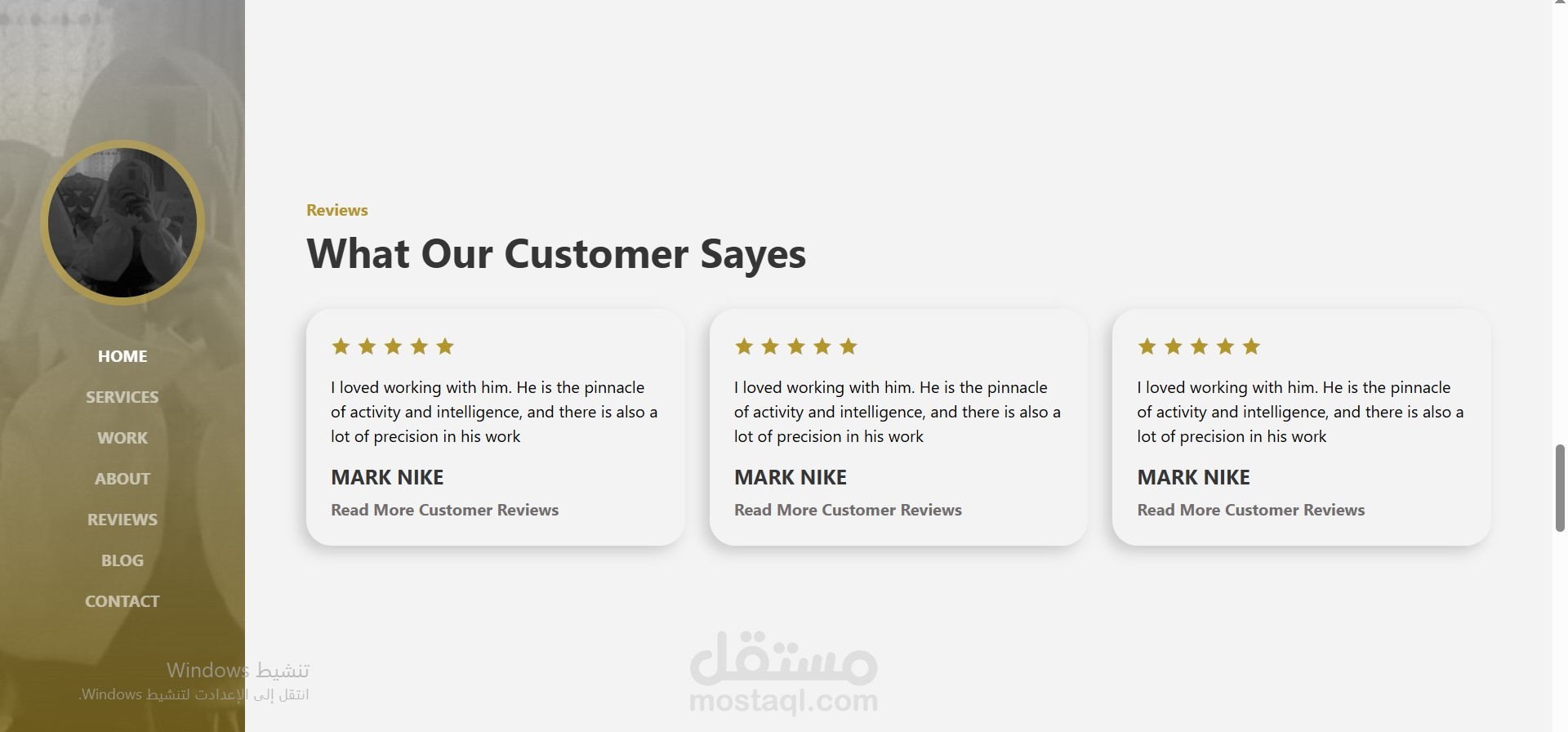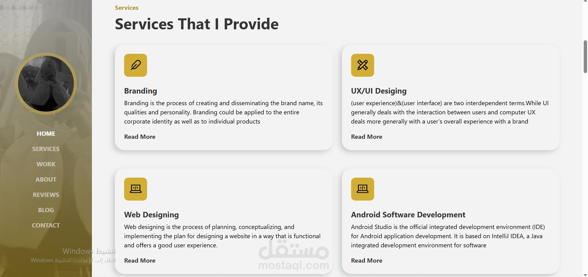 A modern and responsive personal portfolio website built with HTML & CSS. Includes sections for Home, Services, Work, About, Reviews, Blog, and Contact. Features clean design, smooth animations, and user-friendly navigation. Fully responsive for desktop and mobile.