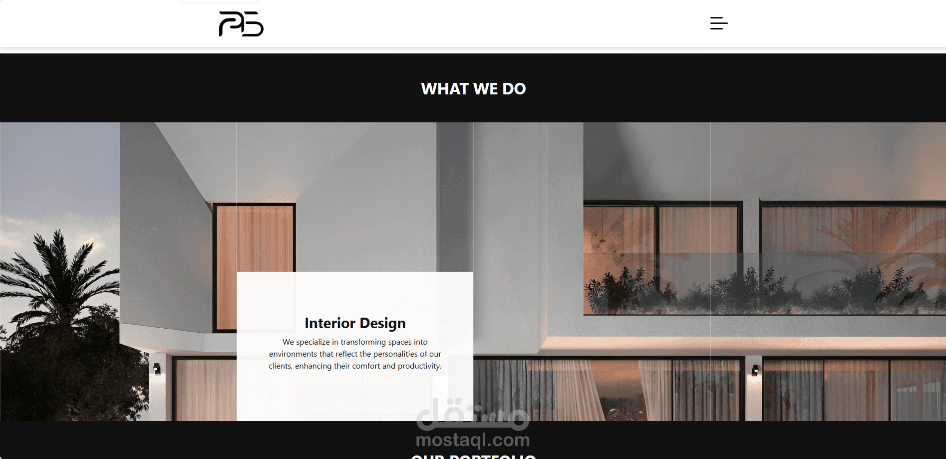 PTS Interior Design هو موقع تم تصميمه وتطويره لعرض خدمات شركة متخصصة في التصميم الداخلي والديكور بأسلوب أنيق واحترافي. يهدف الموقع إلى إبراز هوية الشركة وأعمالها بطريقة جذابة تساعد على بناء الثقة مع العملاء.