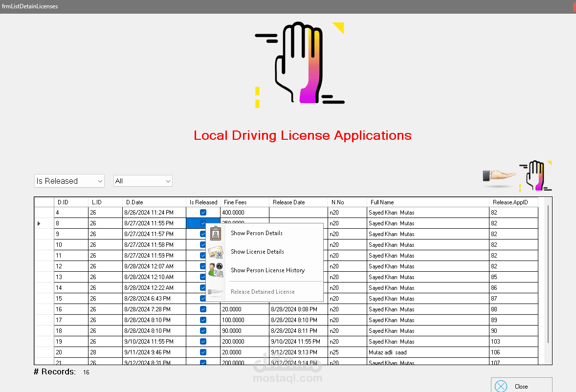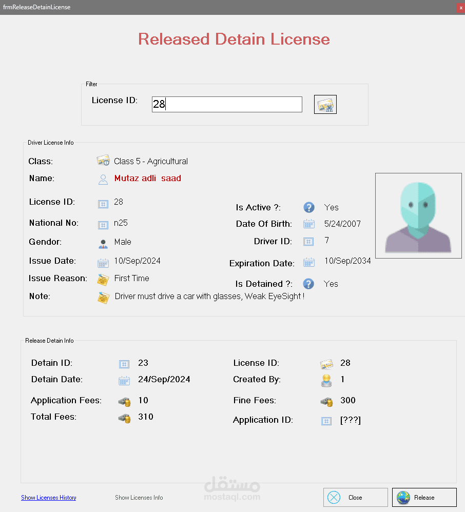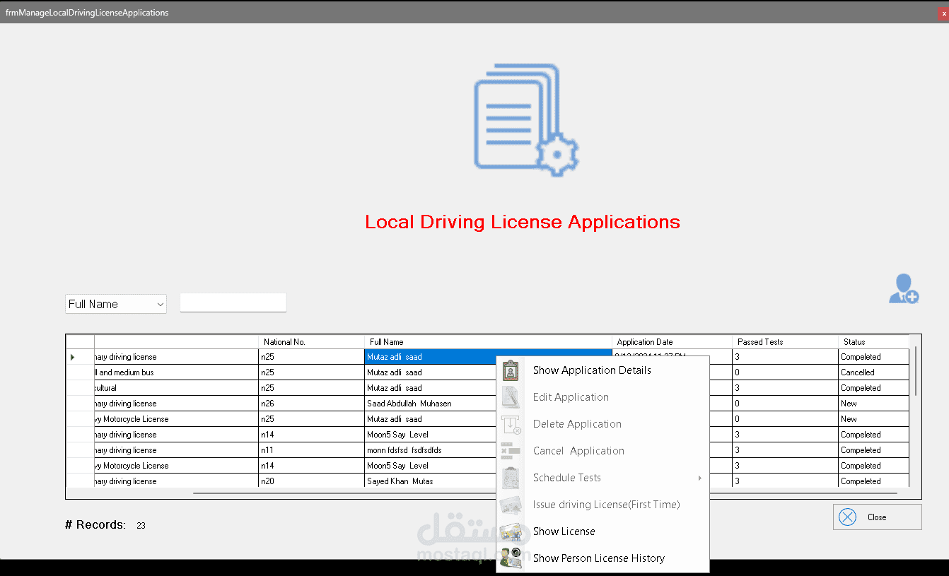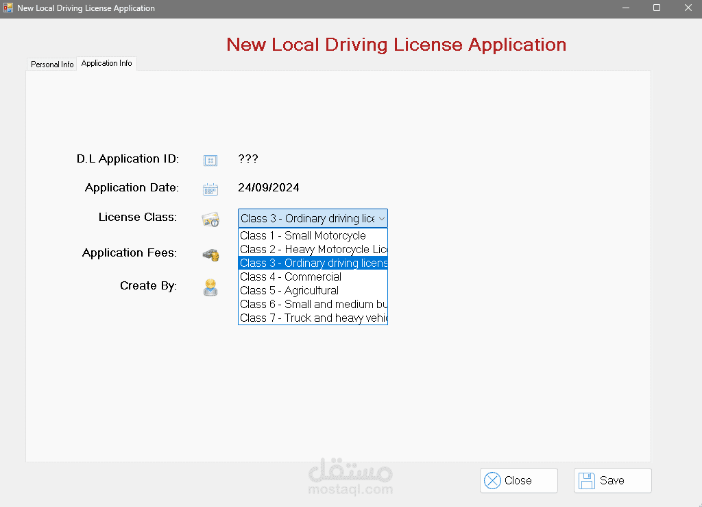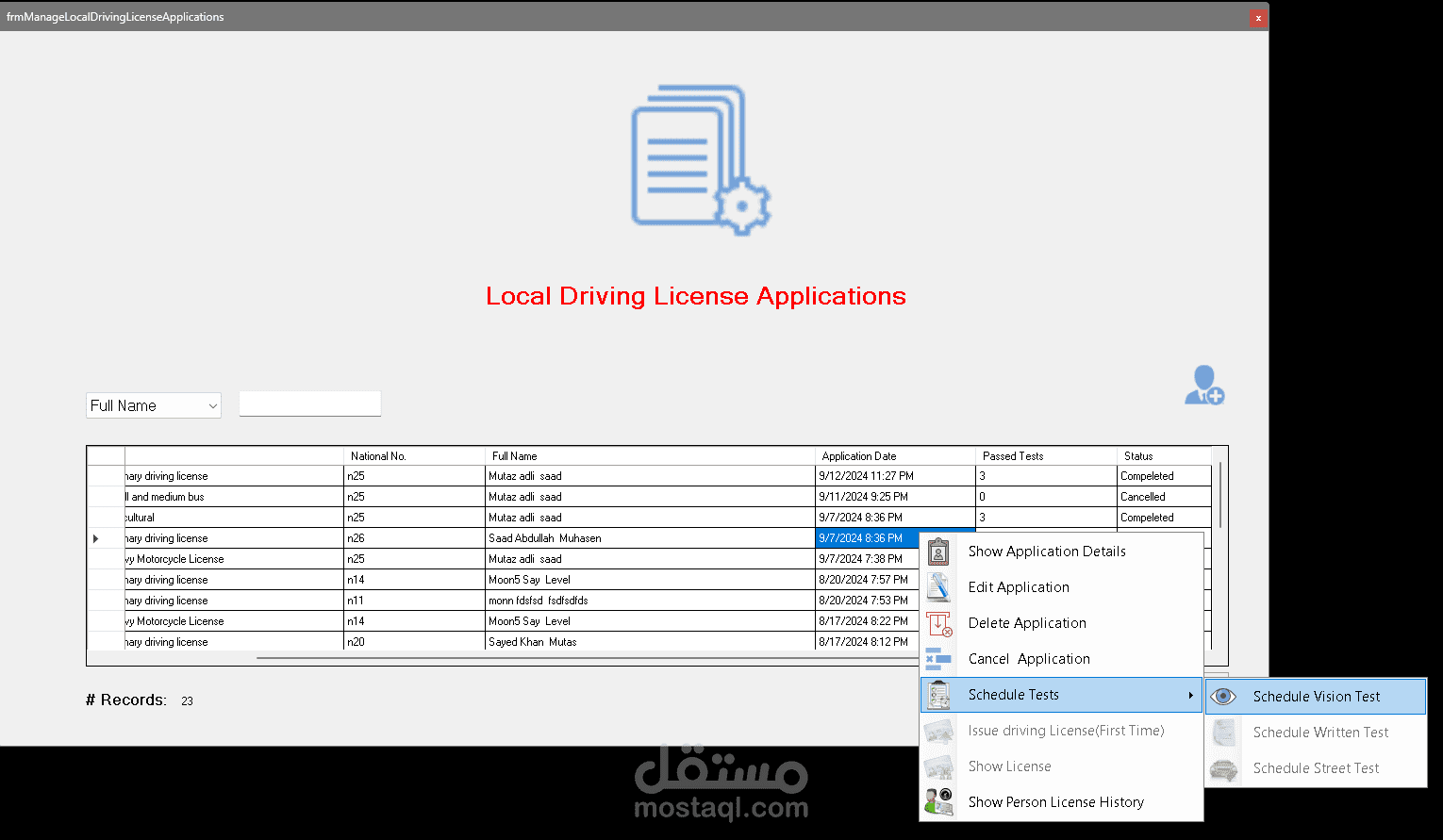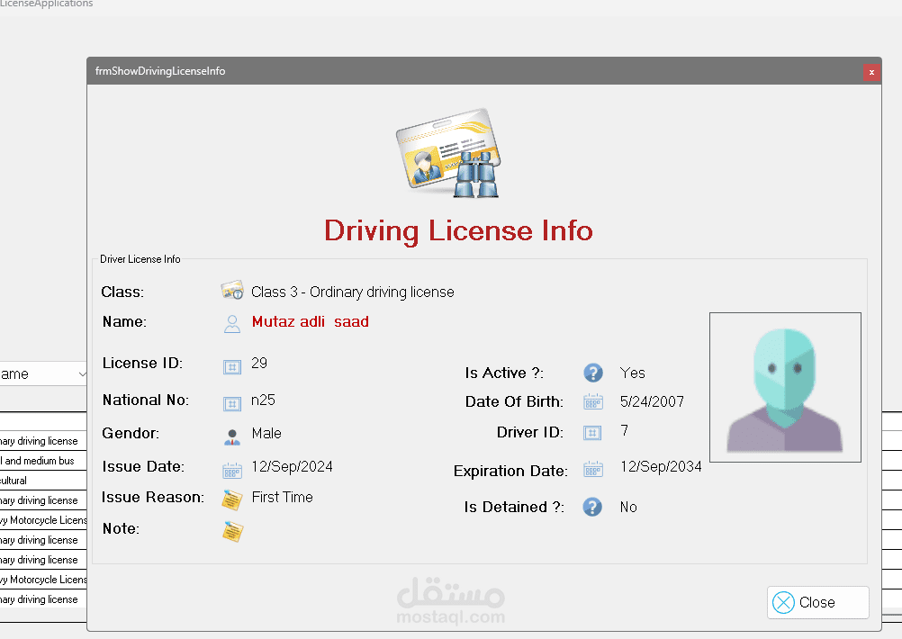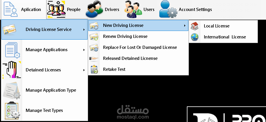تطوير تطبيق سطح مكتب متكامل يخدم الأفراد الراغبين في الحصول على رخصة قيادة بمختلف أنواعها. يتيح النظام للمستخدم إمكانية التقديم على أكثر من نوع رخصة مثل الرخصة الدولية، رخصة الدراجة النارية، رخصة الشاحنات وغيرها.