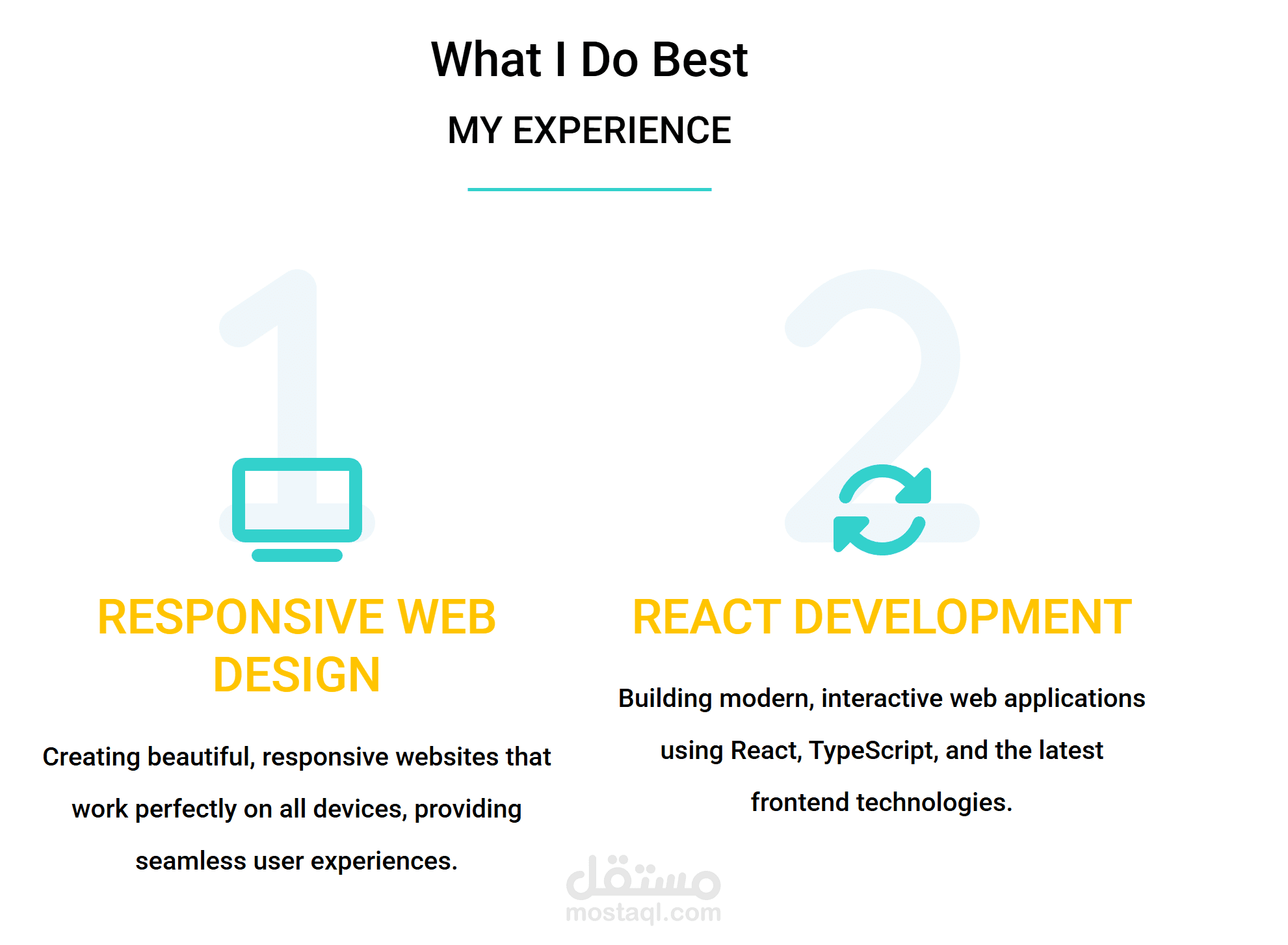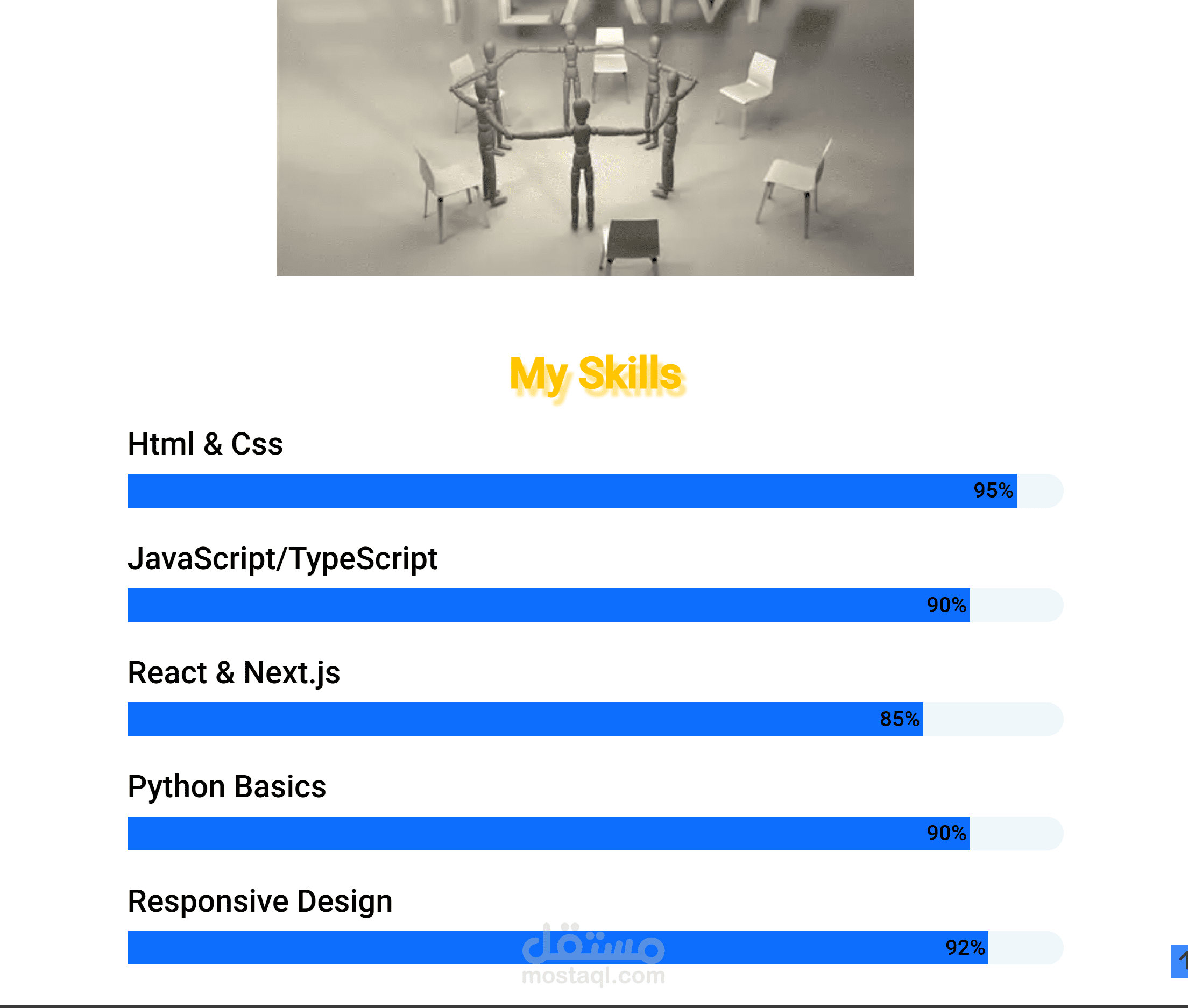 موقع شخصي احترافي لعرض المهارات والخبرات والمشاريع السابقة بتصميم عصري وجذاب.
