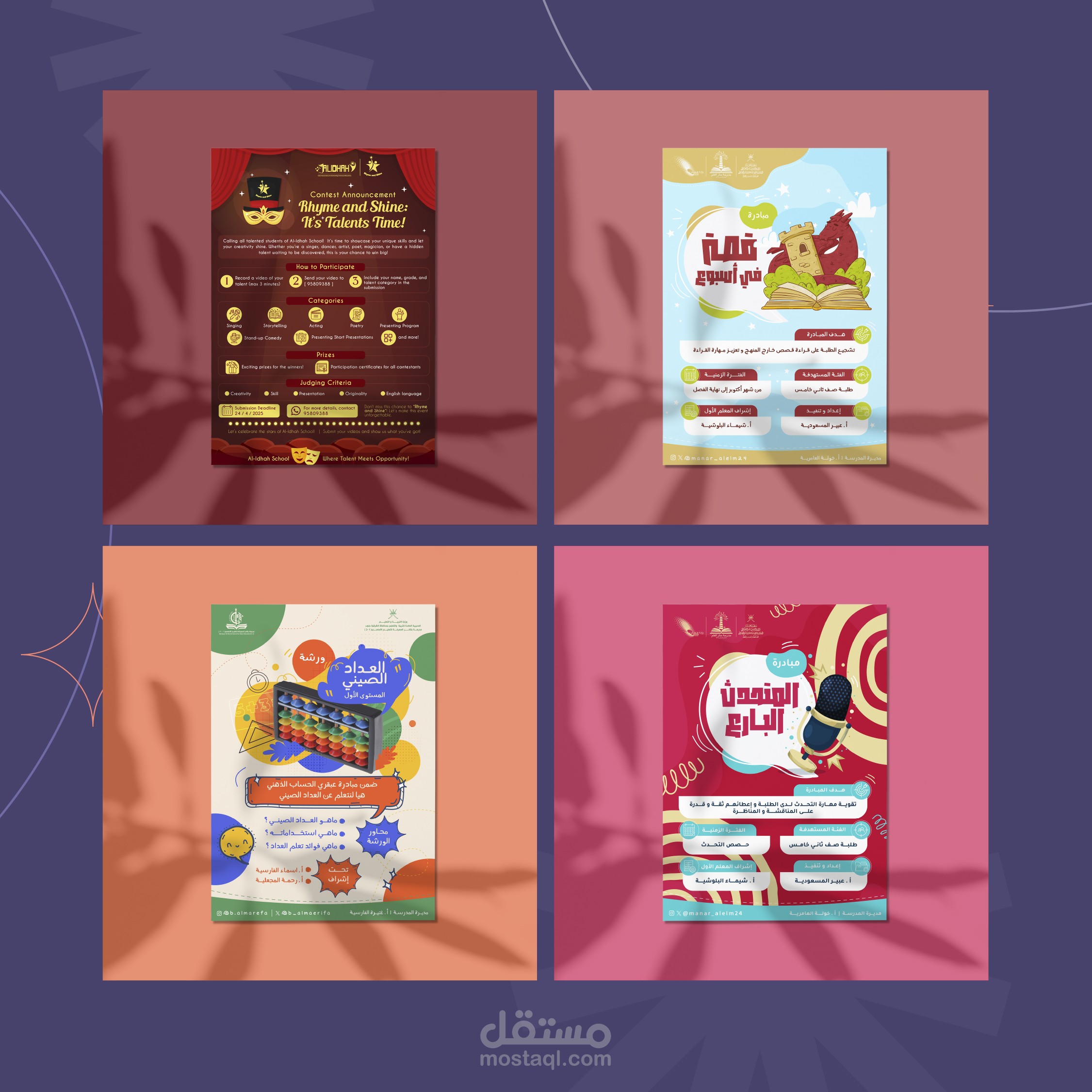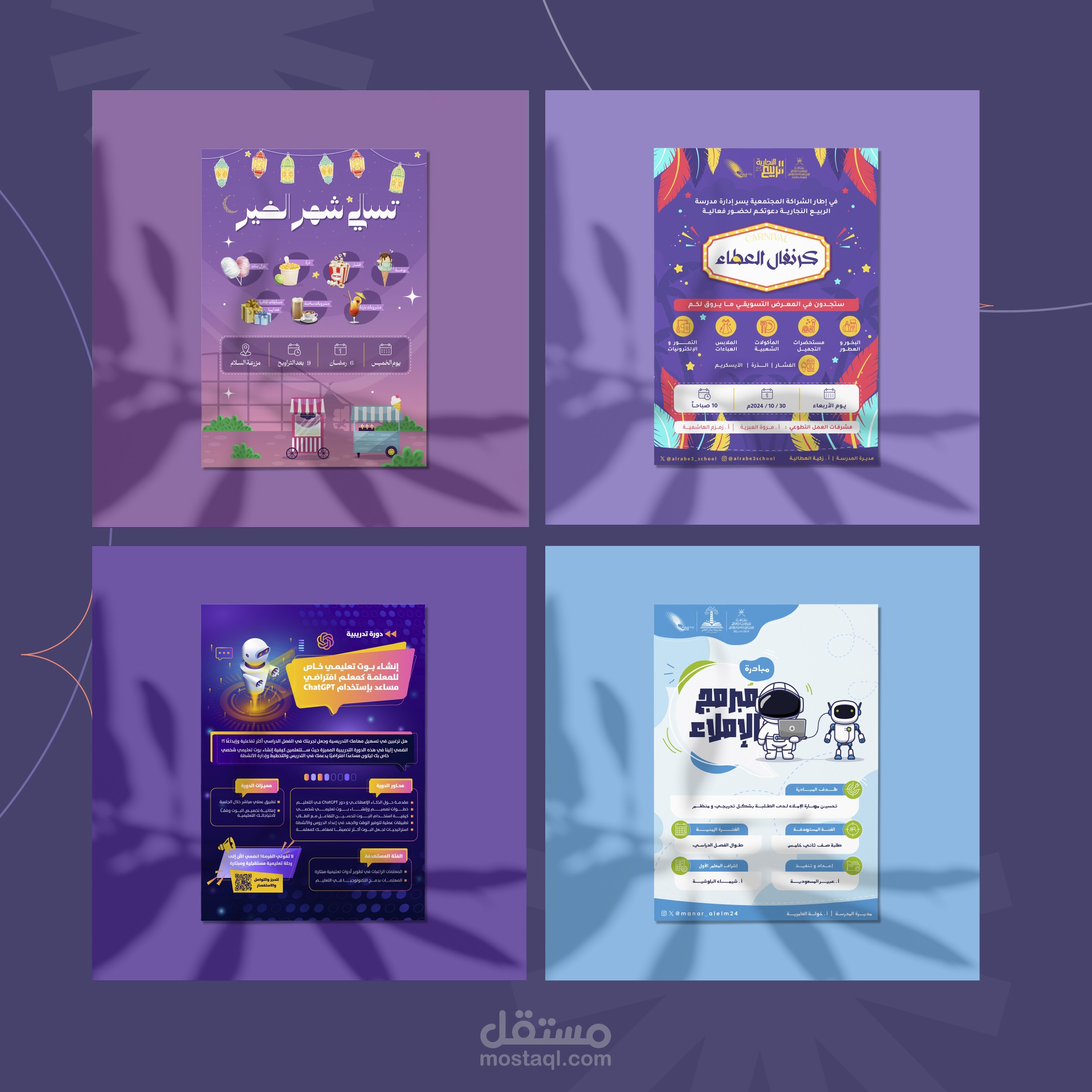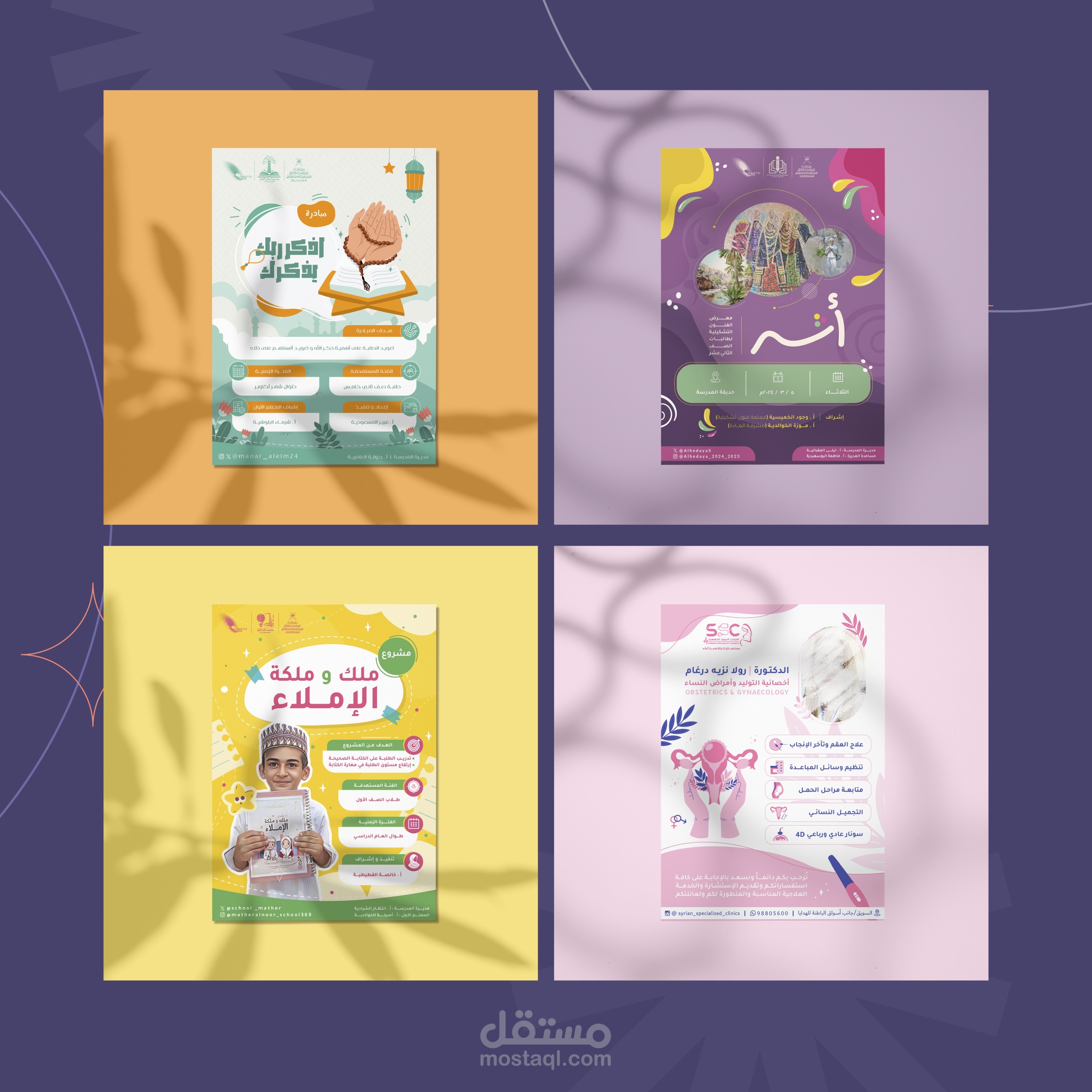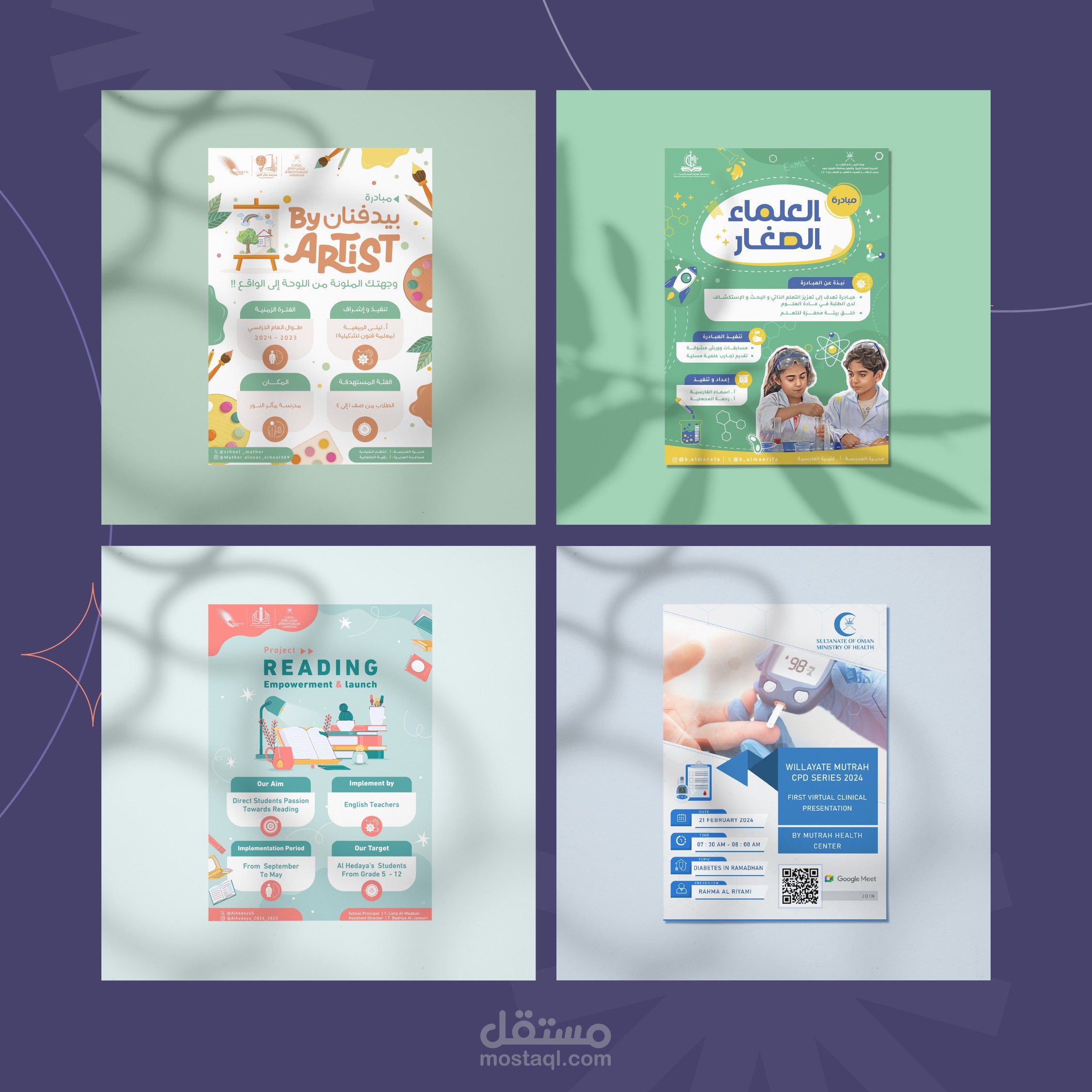 ○تصميم بوسترات ابداعية لمشاريع تجارية و منزلية مختلفة وموسسات تعليمية و جهات حكومية.