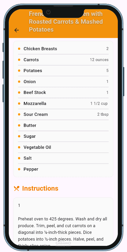 عرض خطوات التحضير (Instructions) بشكل نصي واضح.