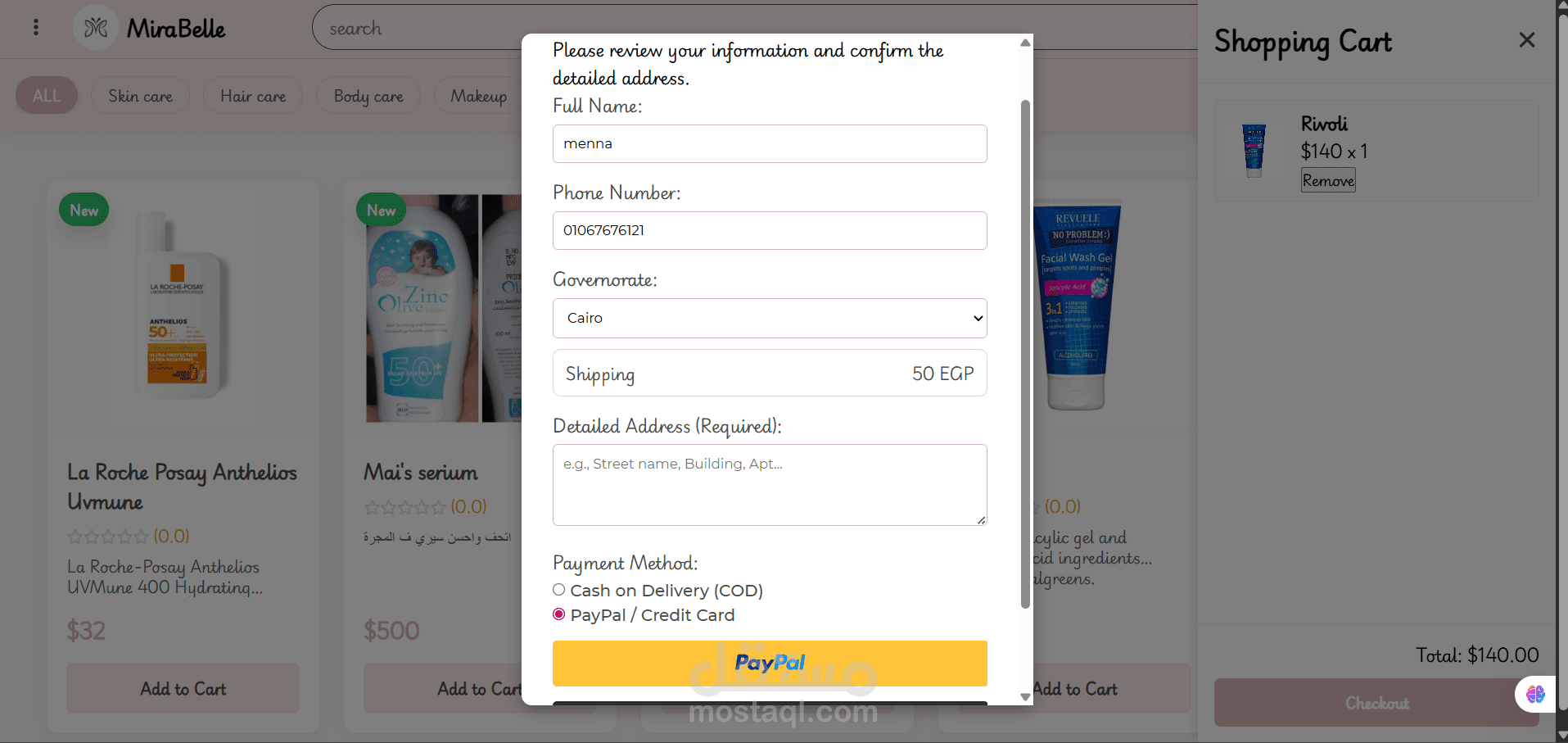 الدفع الإلكتروني: تكامل مع PayPal لتسهيل عمليات الدفع الآمنة.
