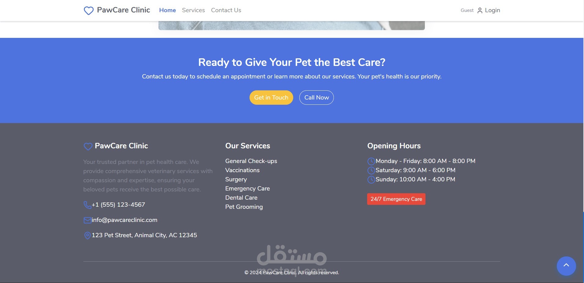 قمت بتطوير نظام متكامل لإدارة عيادة طبية باستخدام React.js، يتيح التحكم الكامل في محتوى العيادة وخدماتها من خلال Admin Dashboard مخصصة.