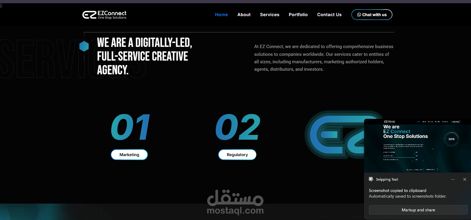 قمت بتصميم وتطوير الواجهة الأمامية لموقع EZ Connect، وهي شركة متخصصة في تقديم حلول برمجية متكاملة (One Stop Solutions). ركّزت في هذا المشروع على إبراز هوية الشركة بشكل احترافي، مع تصميم حديث وتجربة مستخدم واضحة وسلسة.