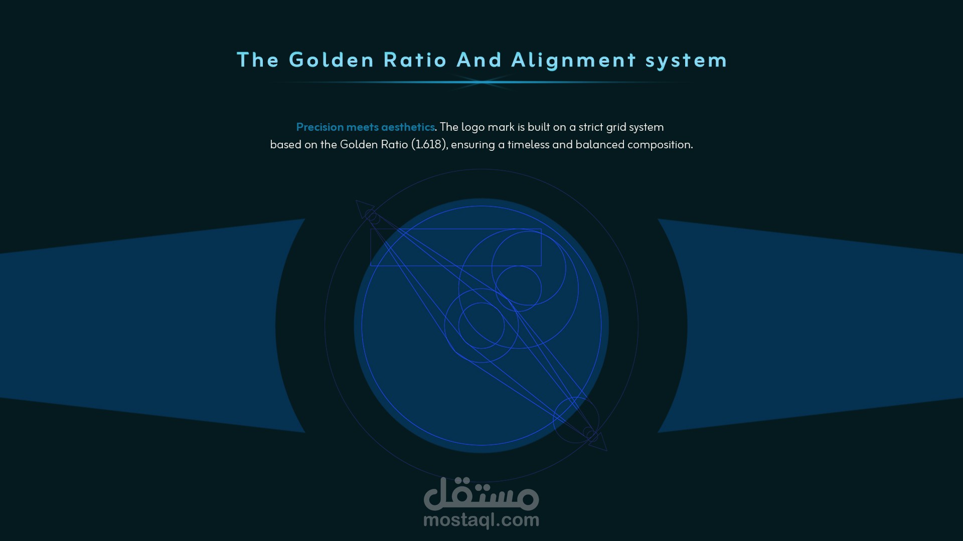 التناغم الهندسي: تم بناء الشعار وفقاً لنسب هندسية دقيقة (Geometric Harmony) لضمان القوة البصرية والاتزان.