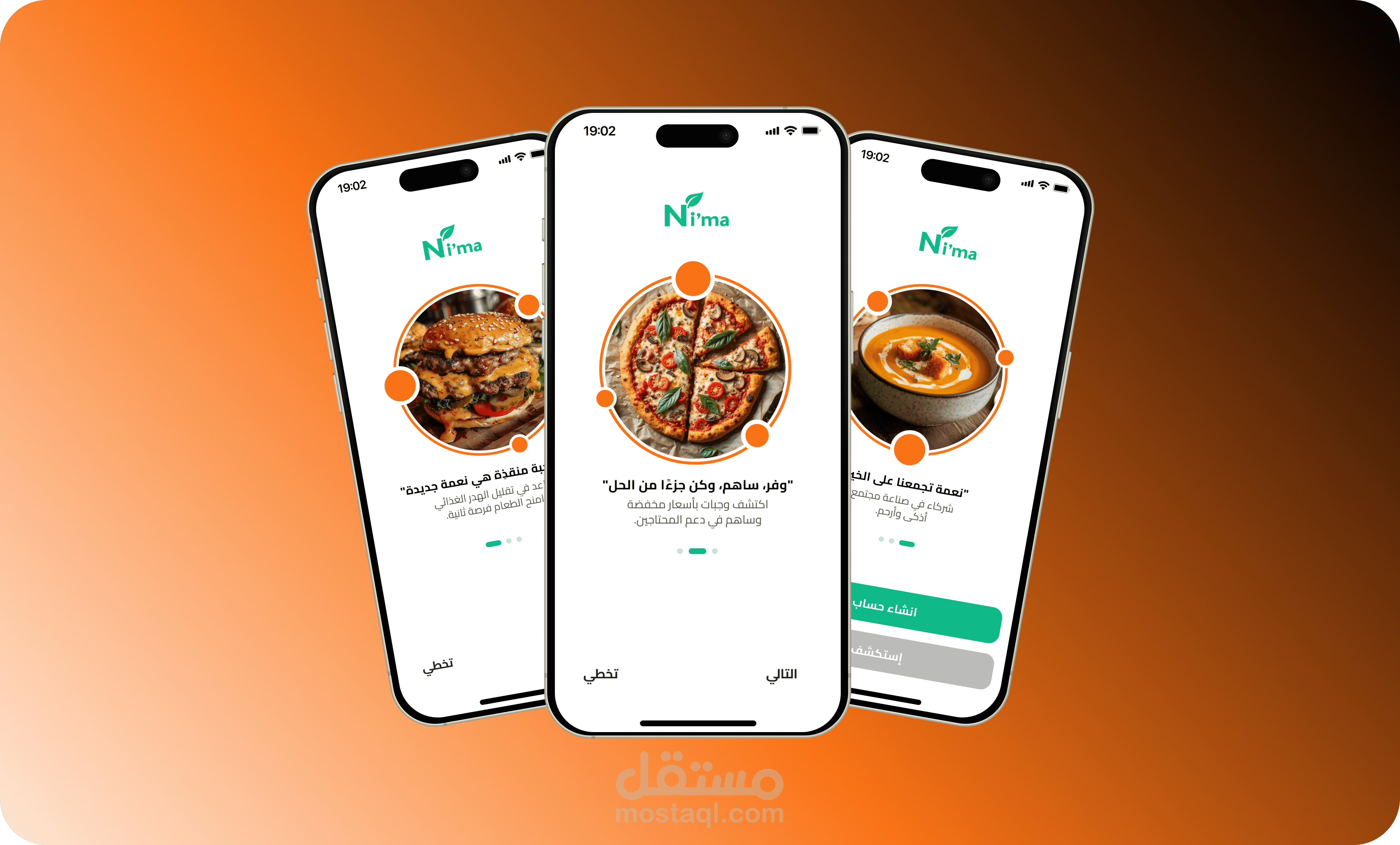 التدفق التمهيدي لتطبيق "نعمة" الذي يثقف المستخدمين حول محاربة هدر الطعام من خلال سرد قصصي مقنع وصور شهية للأطعمة.