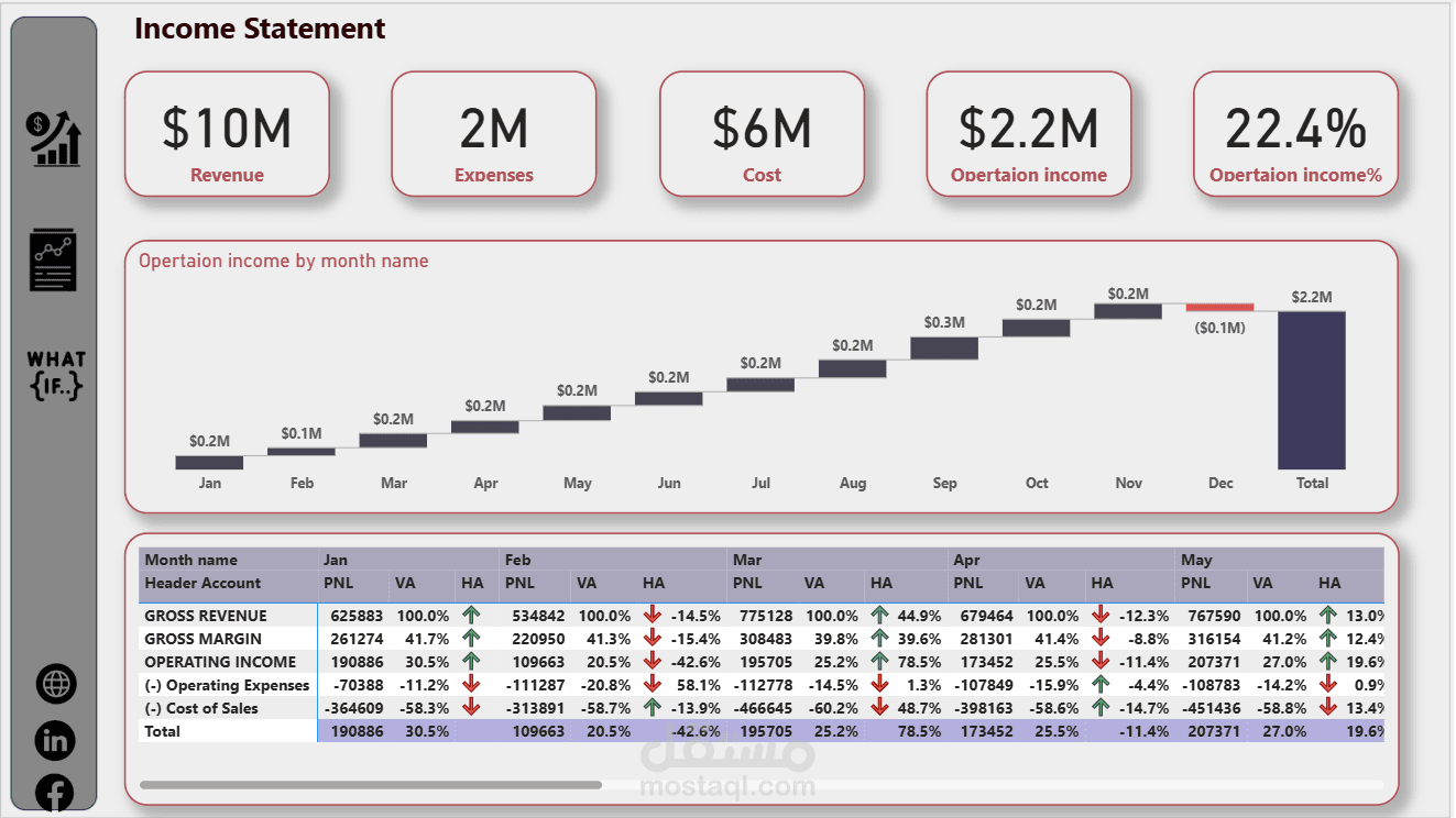 Operating Income with detailed monthly breakdowns