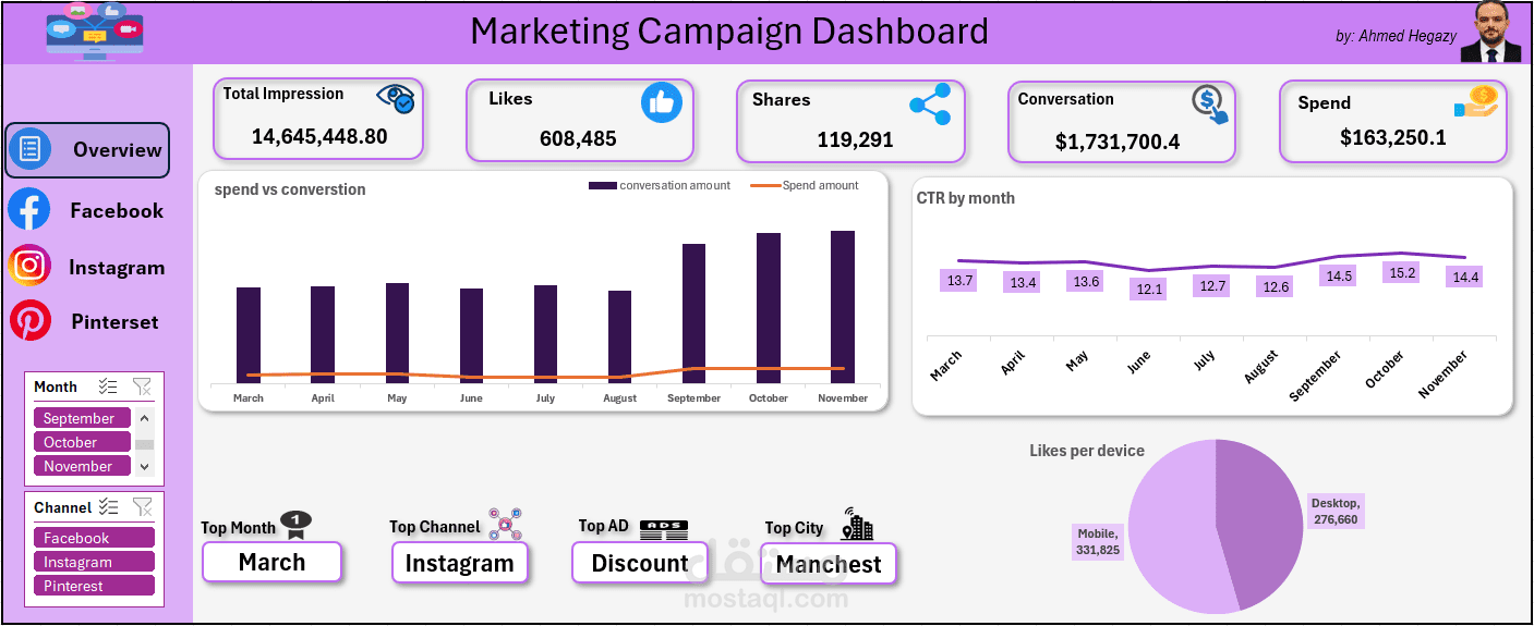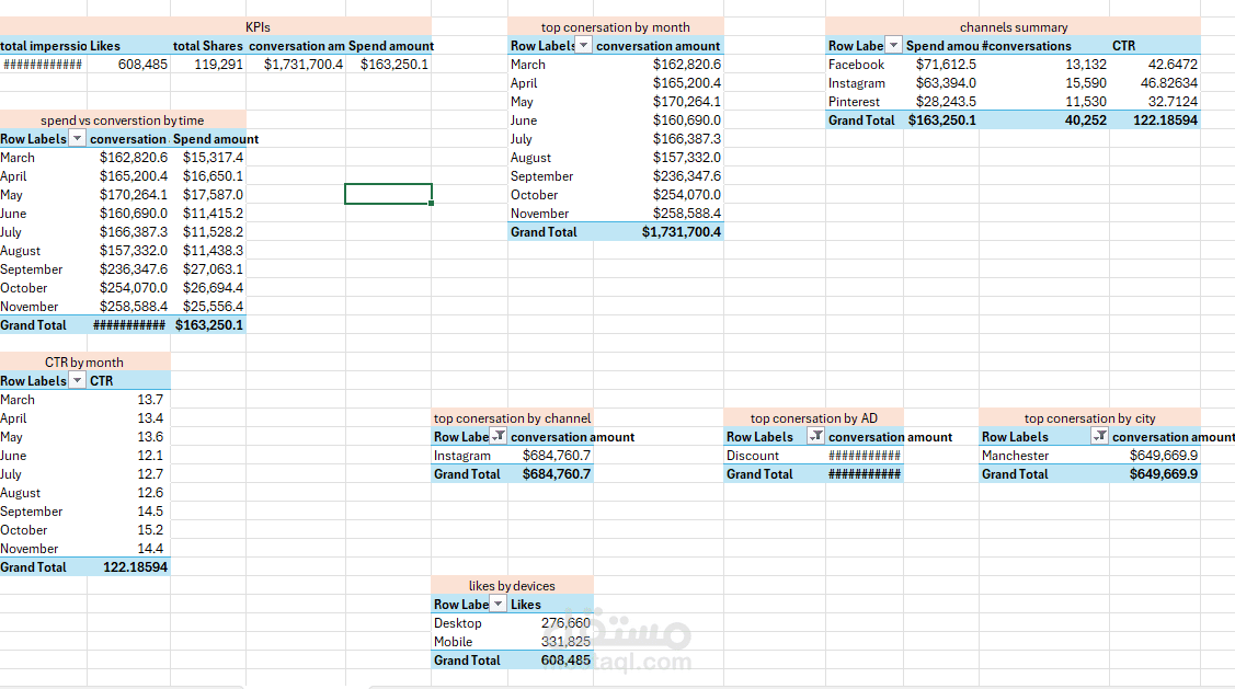 ? Top Insights: Instagram emerged as the top-performing channel, Fall campaigns generated the highest conversions, and Manchester was the leading location by results.