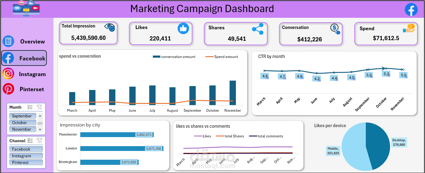 ? Channel Analysis: Compared campaign performance across platforms to identify the most effective channel.