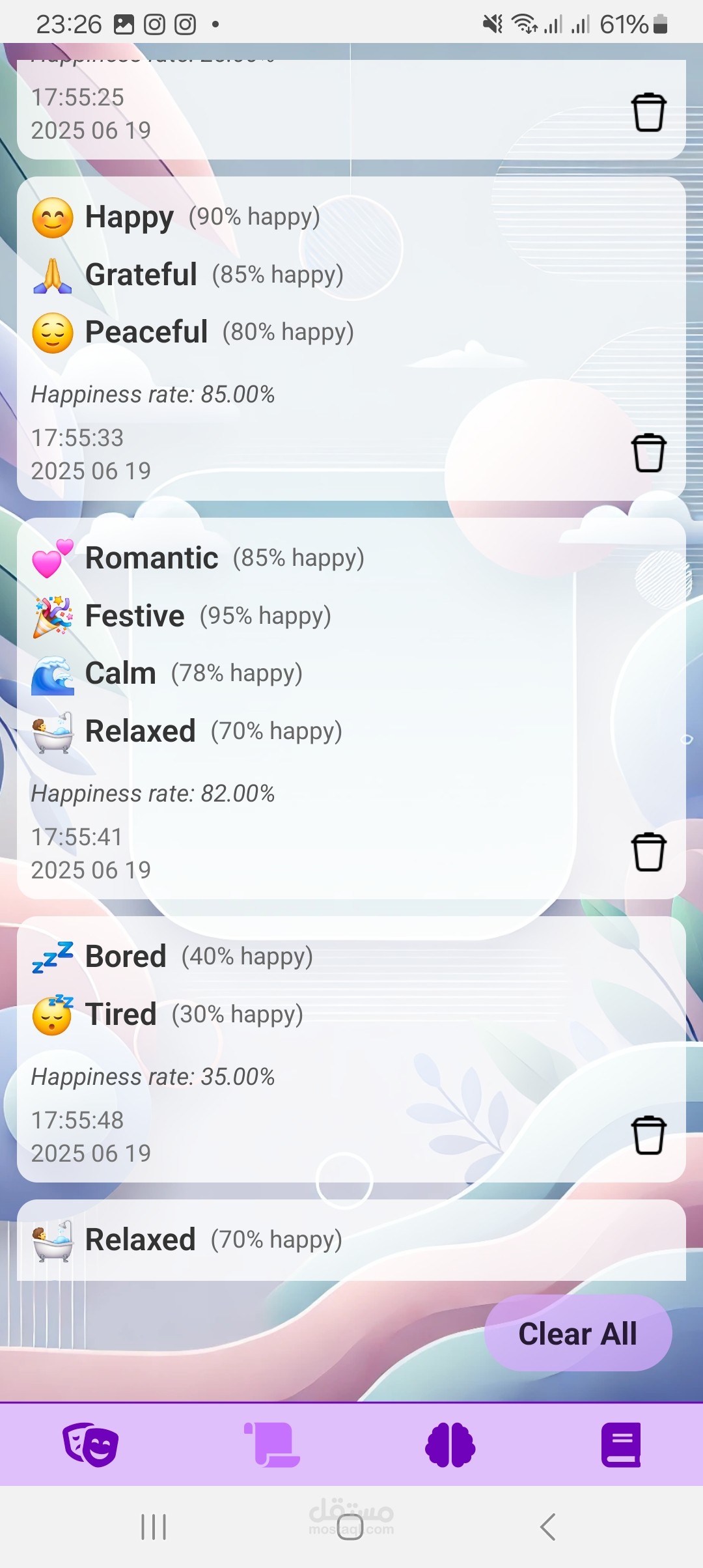 تطبيق هاتف مدعم بذكاء اصطناعي يساعدك على تتبع تقلباتك المزاجية و النفسية و تحليلها خلال اليوم أو خلال الأيام و الأشهر و السنوات، بميزة ذكاء اصطناعي يساعد المستخدم في توفير دعم عاطفي، اضافة الى ميزة التحليل من خلال رسومات بيانية