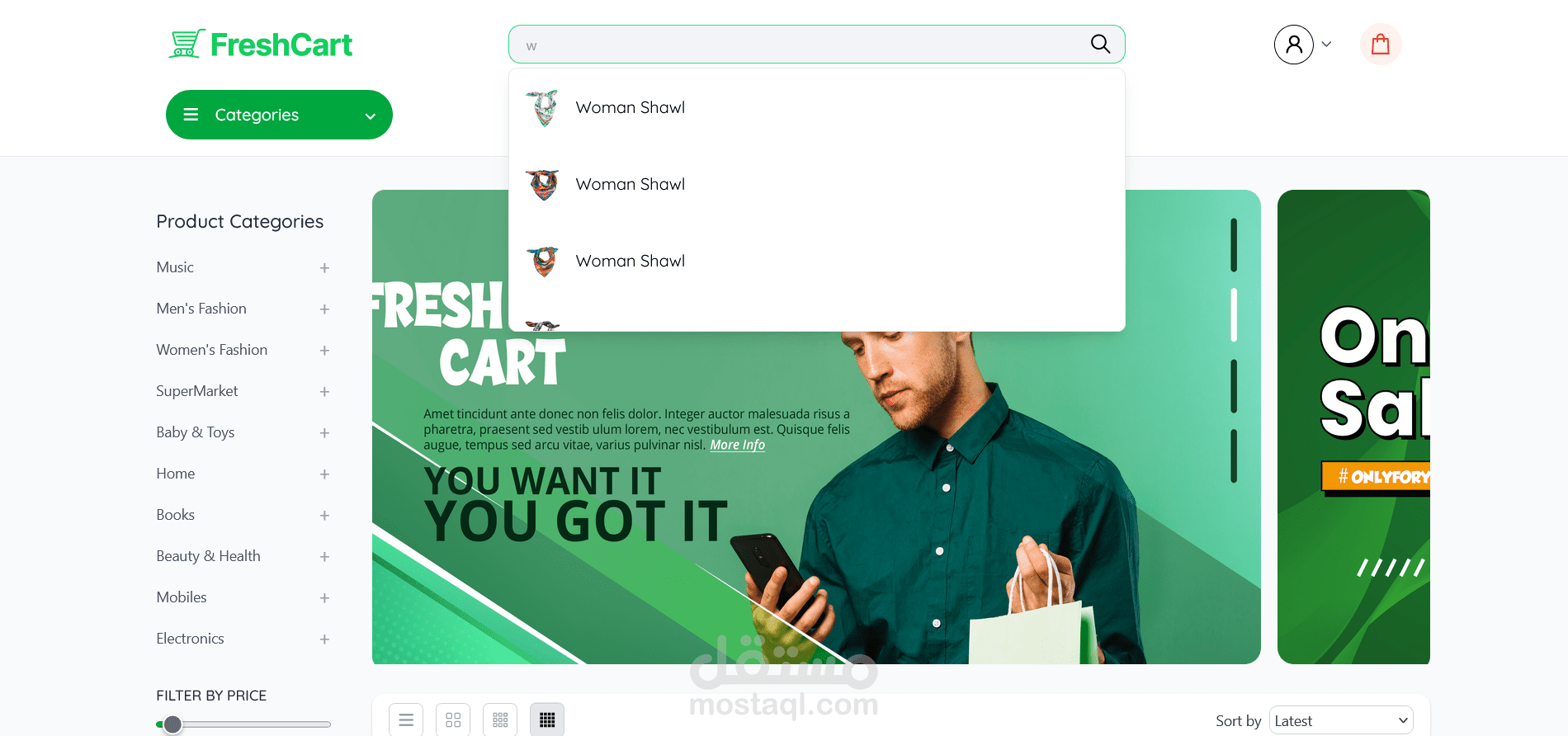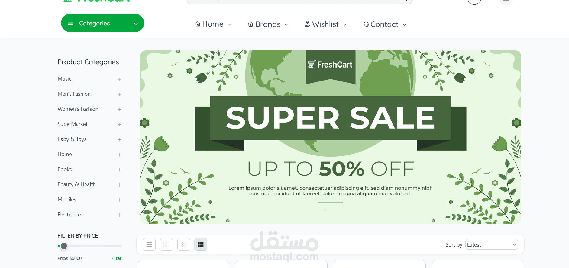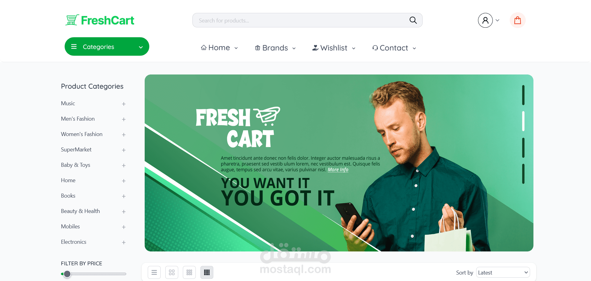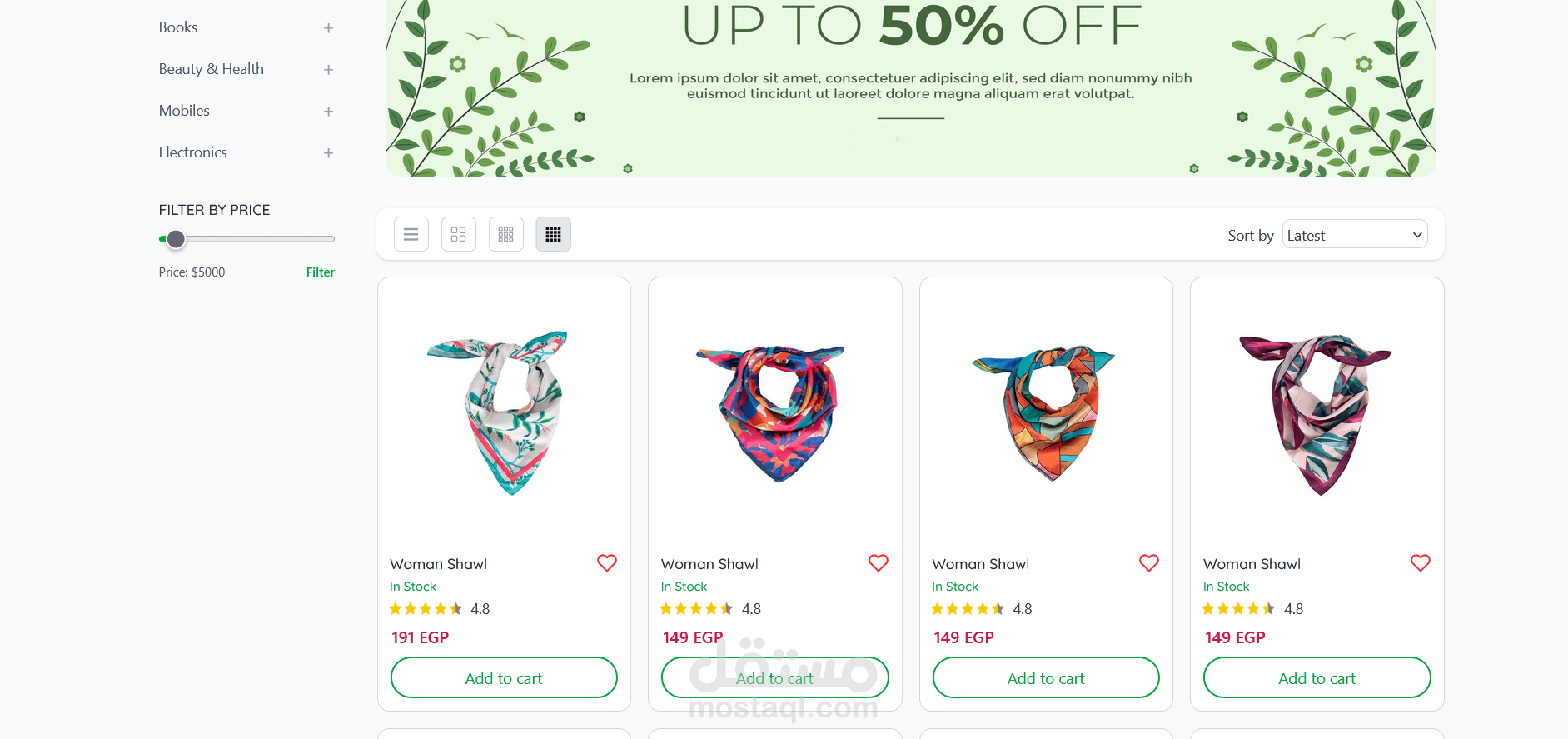 Responsive E-commerce web application with product listings, cart, wishlist, and checkout features using