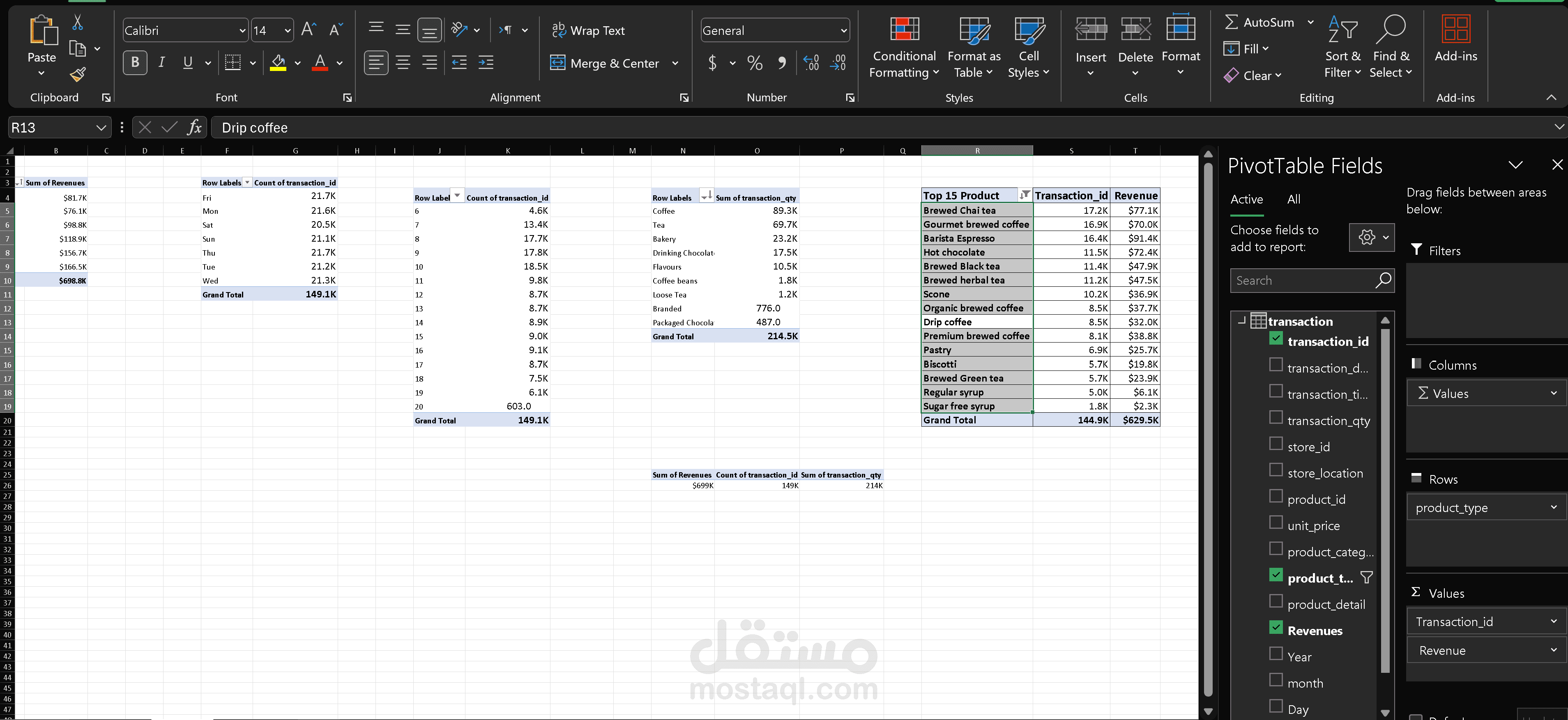 يتمحور هذا المشروع حول تصميم وتنفيذ لوحة تحكم تفاعلية لتحليل مبيعات المقاهي باستخدام Microsoft Excel، بهدف تحويل البيانات الخام إلى رؤى واضحة تساعد على دعم اتخاذ القرار وتحسين الأداء التشغيلي.