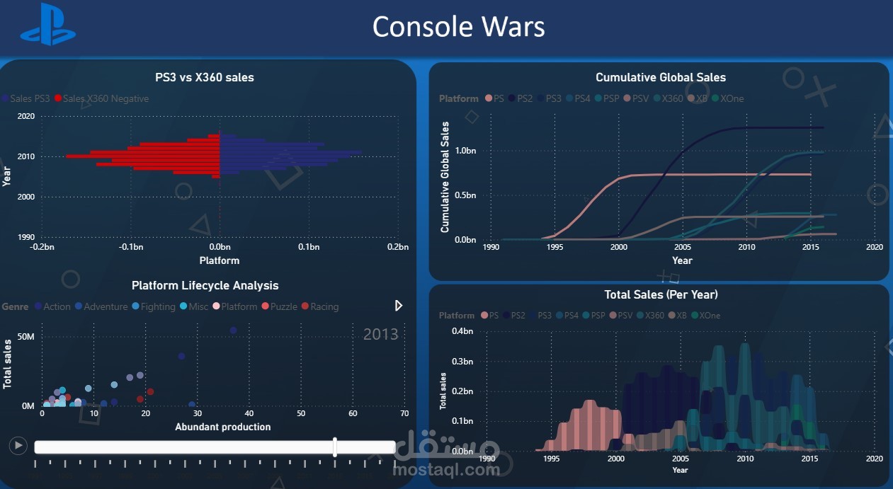 • 3 صفحات تفاعلية (Overview, Sales Analysis, Console Wars)