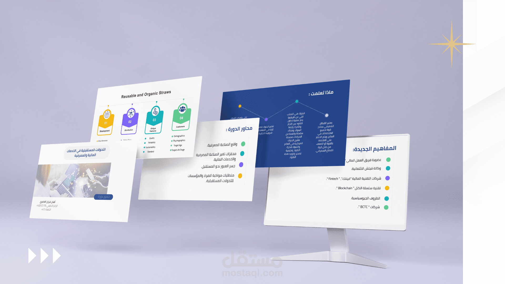 تم تنفيذ العروض بأسلوب حديث يوازن بين الجمالية والوظيفة، ومناسب للاستخدام الأكاديمي، التسويقي، والتعريفي.