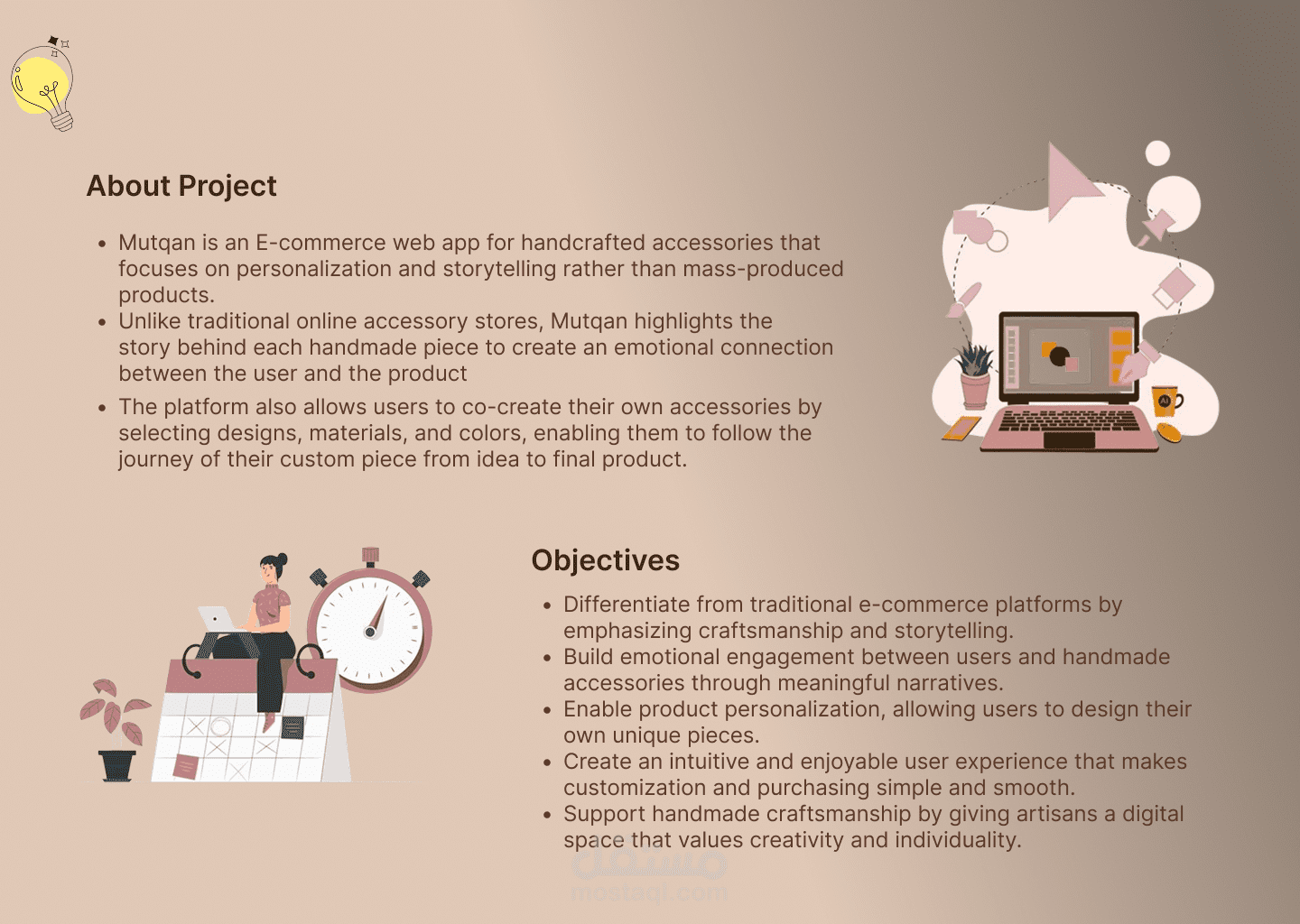 متقن هو Web-based E-commerce platform صُمّم لمعالجة فجوتين أساسيتين في سوق الإكسسوارات اليدوية: ضعف الثقة في “الهاند ميد”، والتخصيص السطحي الذي لا يمنح المستخدم قيمة حقيقية.
