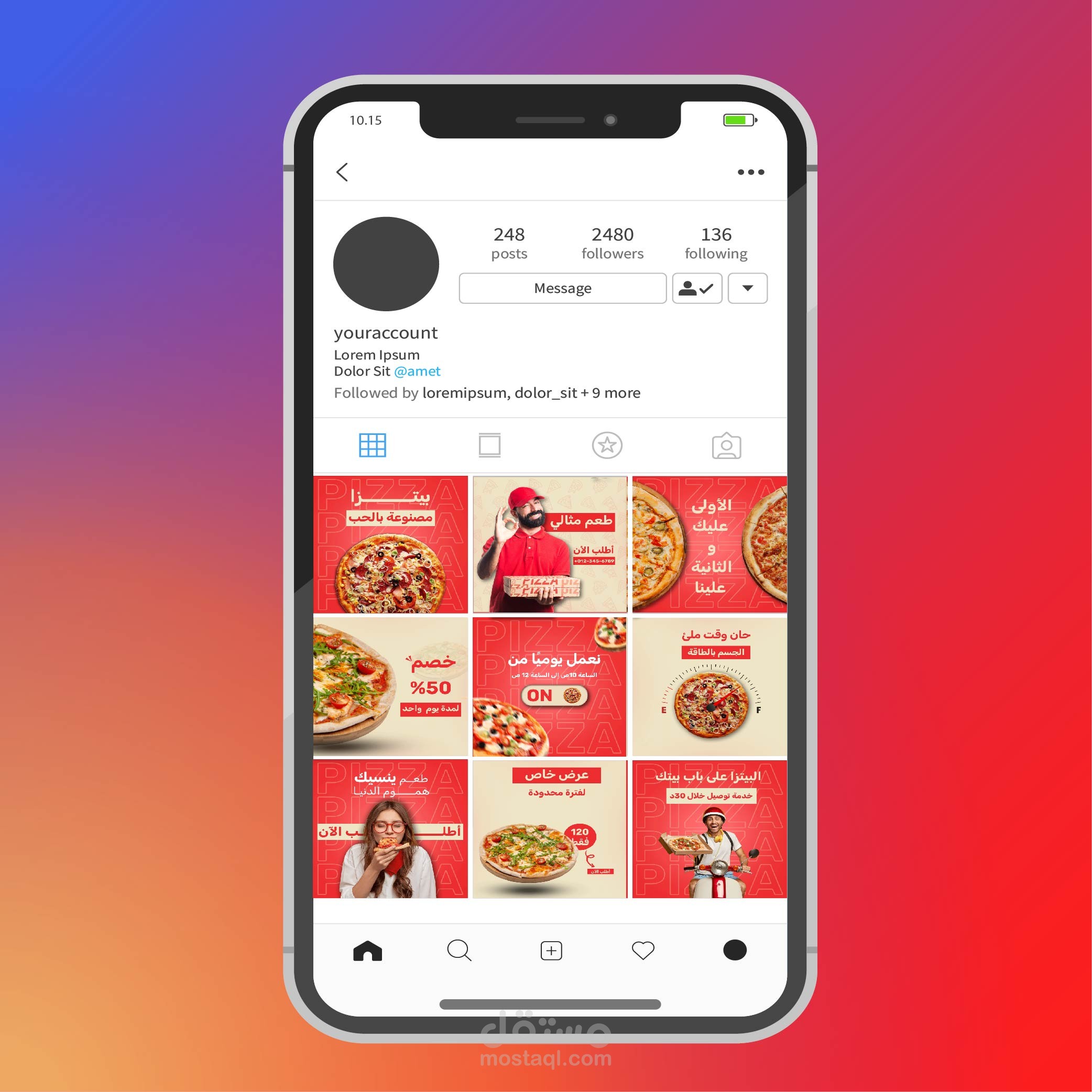 تصميم جريد لمطعم بيتزا