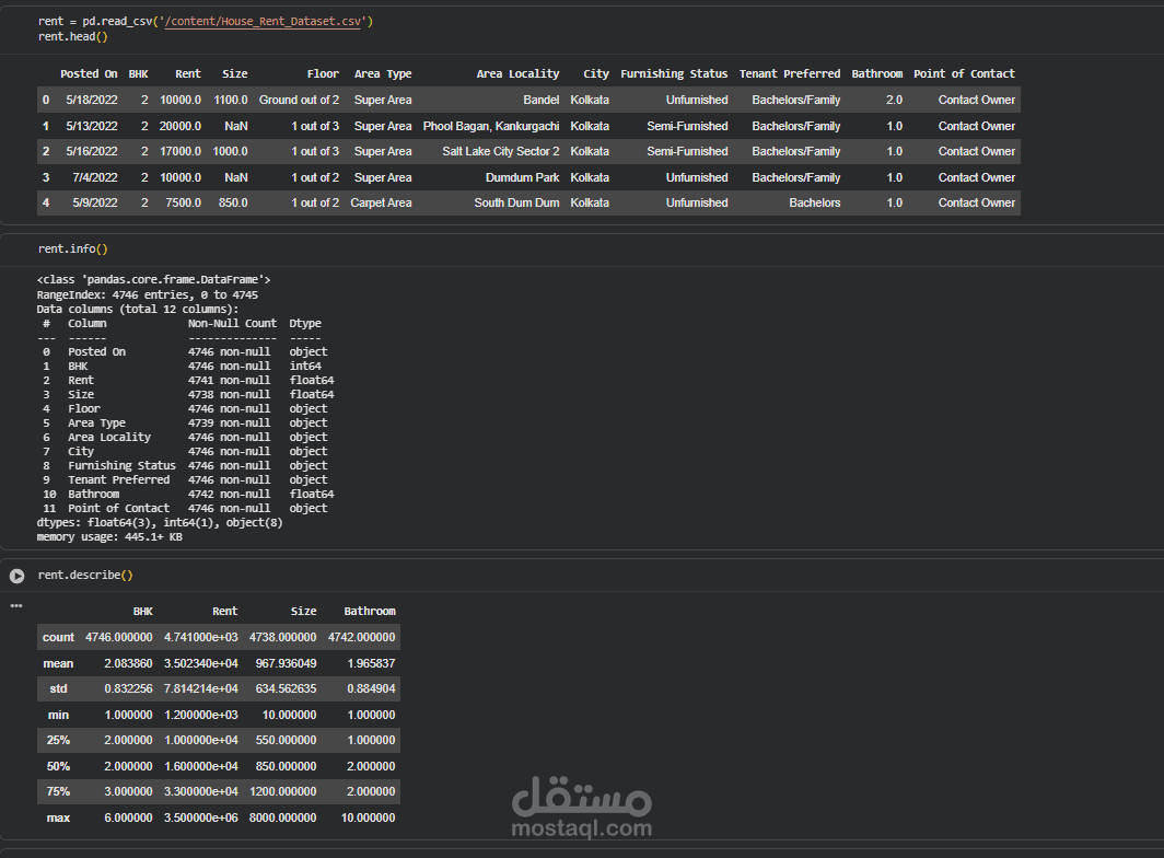 In this project, I developed a complete machine learning pipeline to predict house rental prices based on real-world housing data. The model was built to estimate the expected rent of residential properties by analyzing multiple influential features such as location, size, number of rooms, area type, and furnishing status. The aim was to provide a reliable predictive tool that can support landlords, tenants, and real estate professionals in making data-driven decisions.