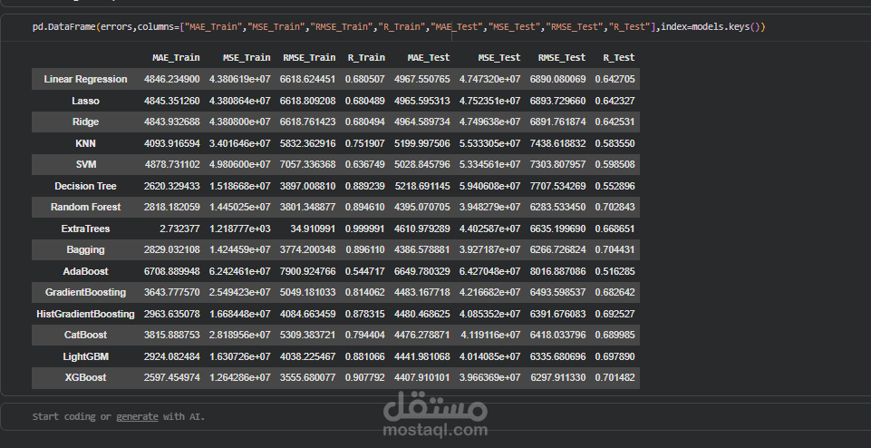 The workflow included thorough data preprocessing, handling missing values, and encoding categorical variables to prepare the dataset for modeling. I conducted exploratory data analysis (EDA) to understand feature distributions and relationships, and applied visualizations to reveal key insights. Multiple regression algorithms were tested and evaluated to select the best-performing model, using performance metrics such as R² Score and Mean Squared Error (MSE) to assess predictive quality.
